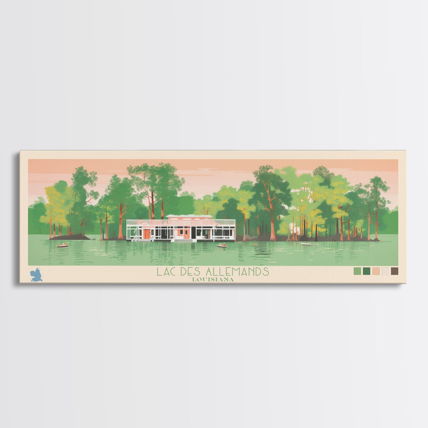Lac des Allemands Louisiana Framed Canvas Print, Panoramic Art, Midcentury Modern, Pop Art, Living Room Wall Art, Travel Poster, Lake House Decor