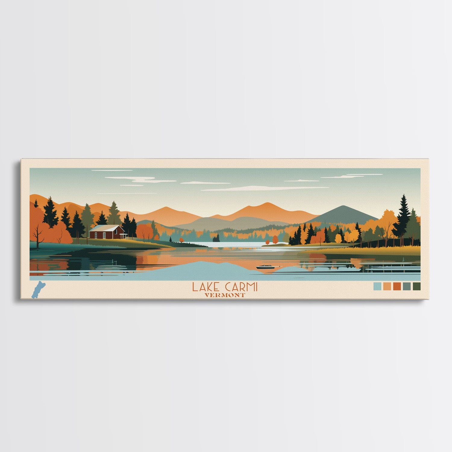 Lake Carmi Vermont Framed Canvas Print, Panoramic Art, Midcentury Modern, Pop Art, Living Room Wall Art, Travel Poster, Lake House Decor