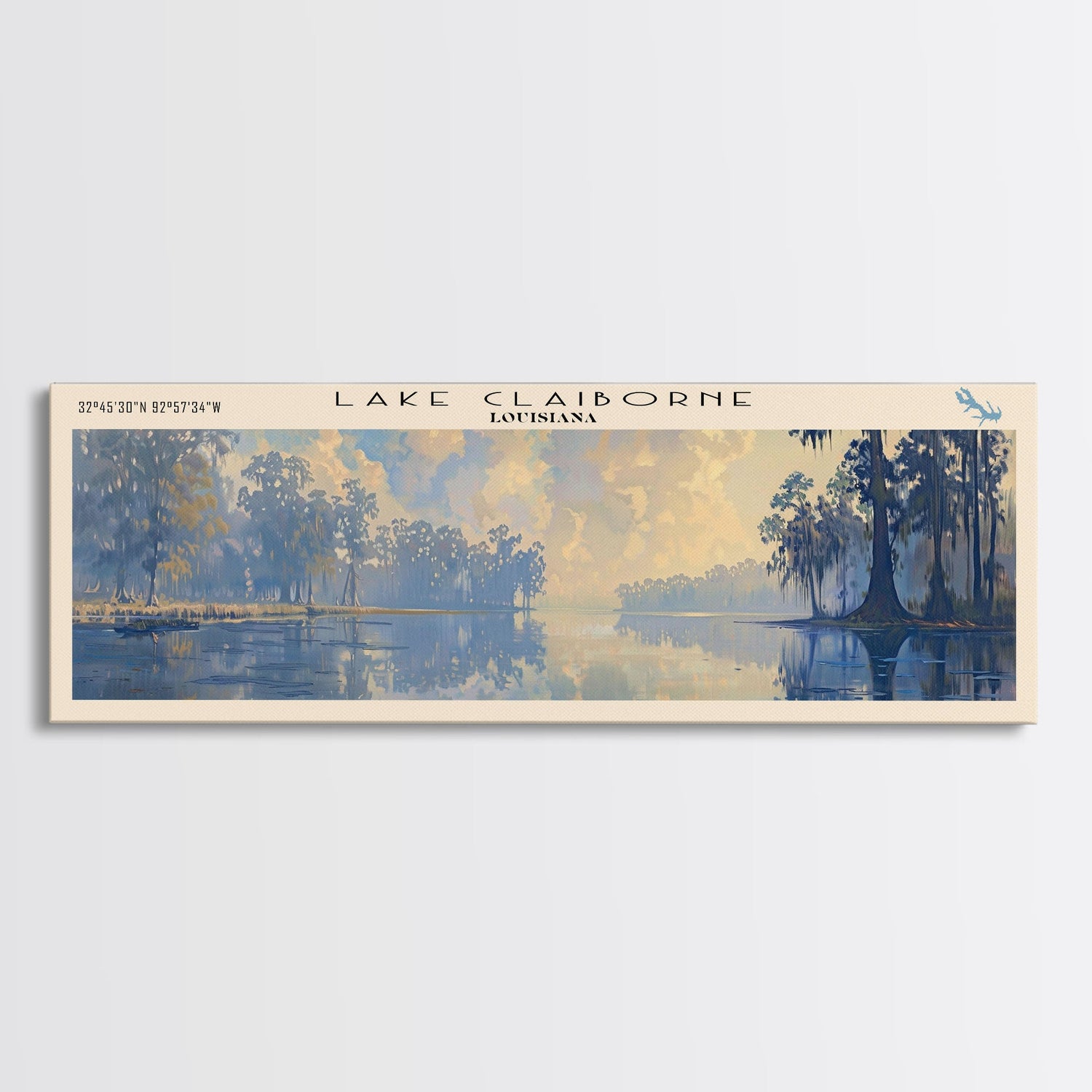 Lake Claiborne Louisiana Framed Canvas Print, Lake House Decor, Panoramic Wall Art, Travel Poster, Serene Lake Painting, Nature Art