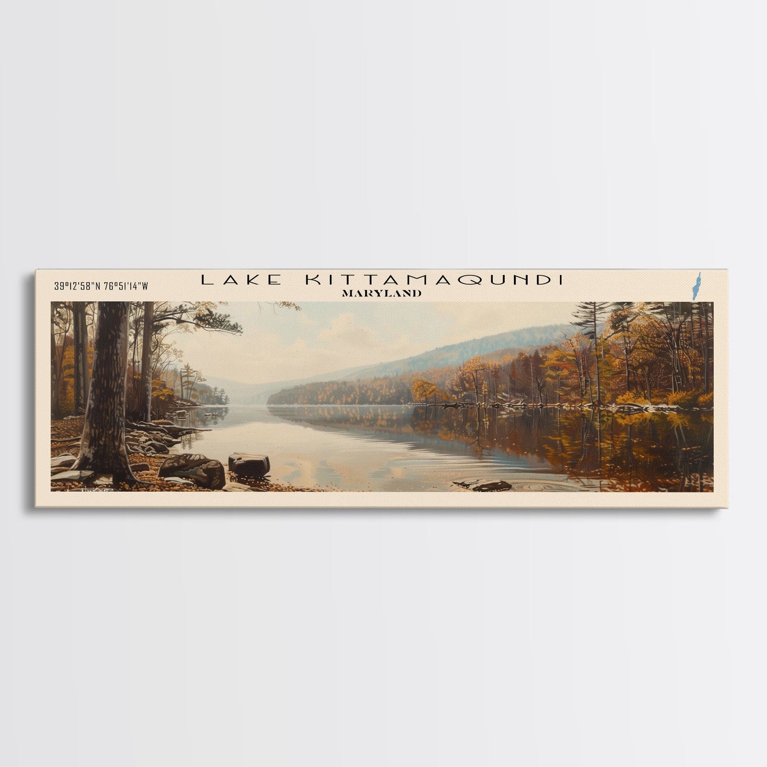Lake Kittamaqundi Maryland Framed Canvas Print, Lake House Decor, Panoramic Wall Art, Travel Poster, Stunning Lake Painting, Home Art