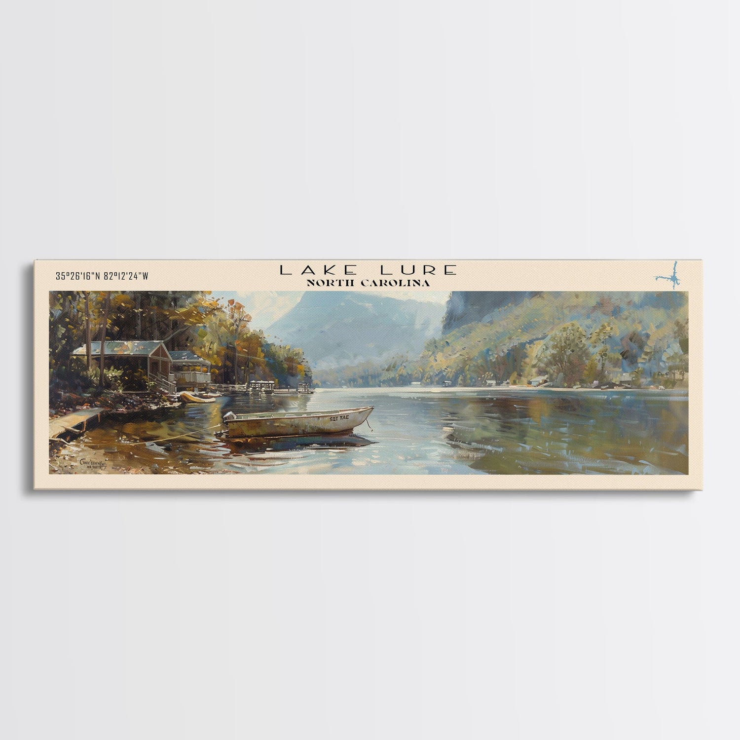 Lake Lure North Carolina Framed Canvas Print, Lake House Decor, Panoramic Wall Art, Travel Poster, Peaceful Lakeside Painting, Boho Art