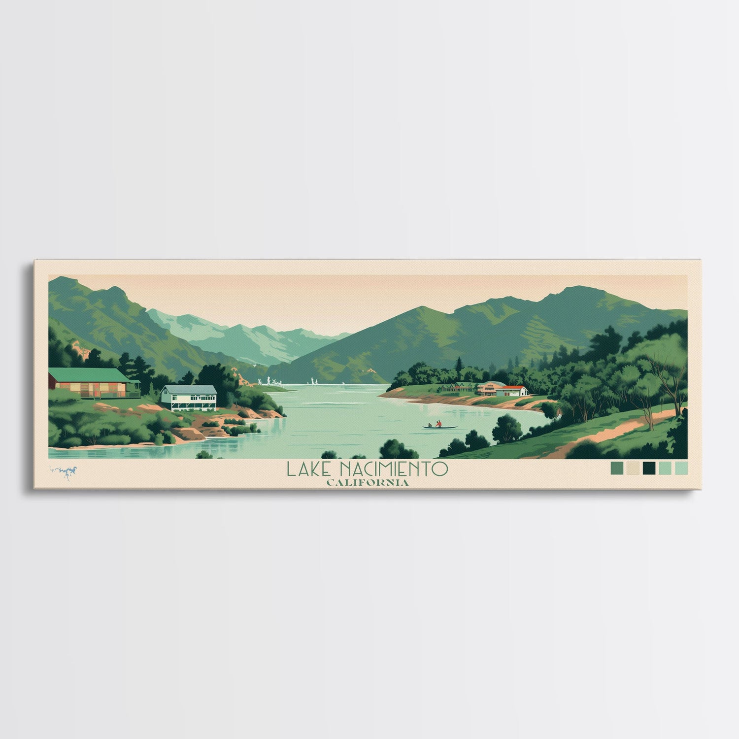 Lake Nacimiento California Framed Canvas Print, Panoramic Wall Art, Midcentury Modern, Pop Art, Living Room Decor, Travel Poster, Lake House Art