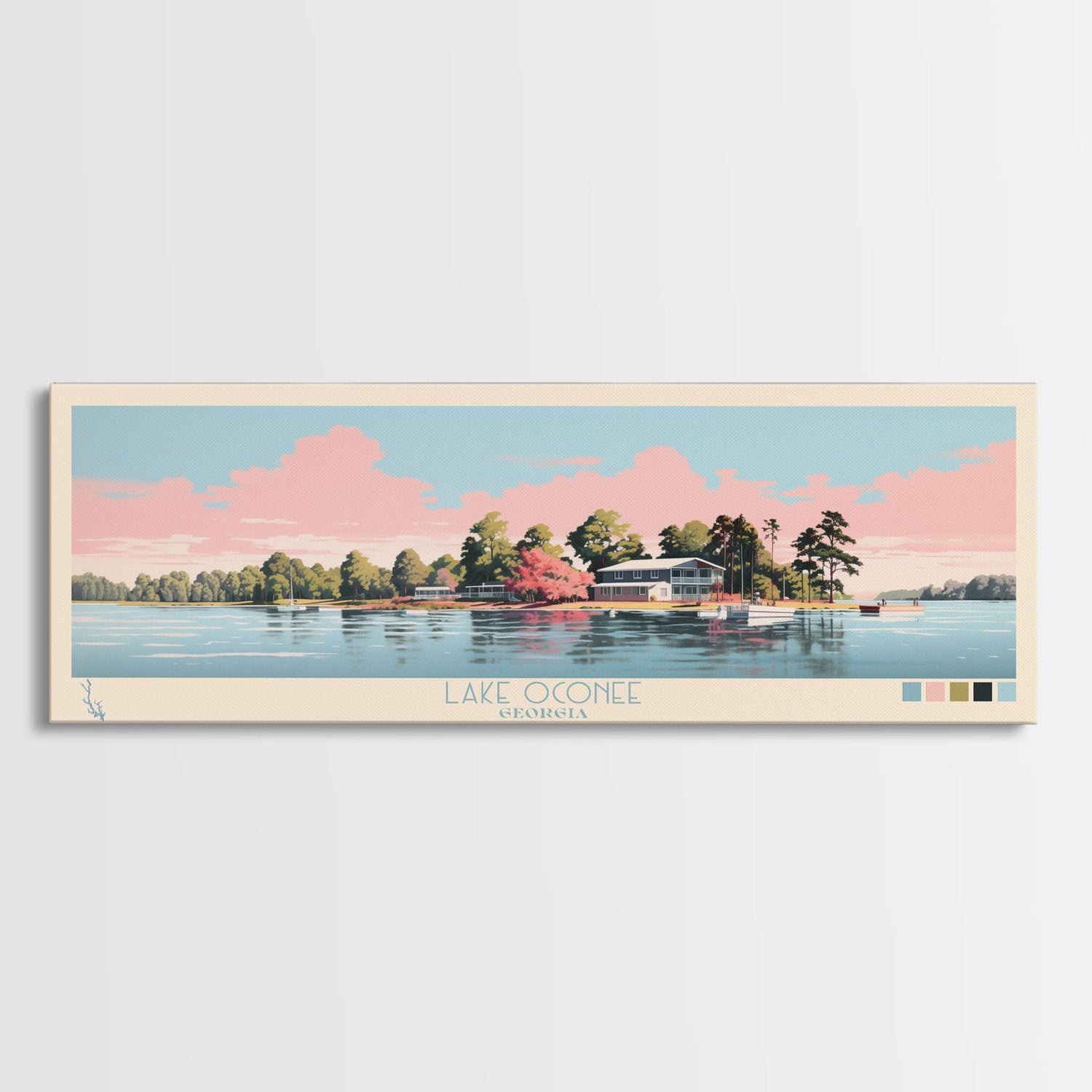 Lake Oconee Georgia Framed Canvas Print, Panoramic Wall Art, Midcentury Modern, Pop Art, Living Room Decor, Travel Poster, Lake House Art
