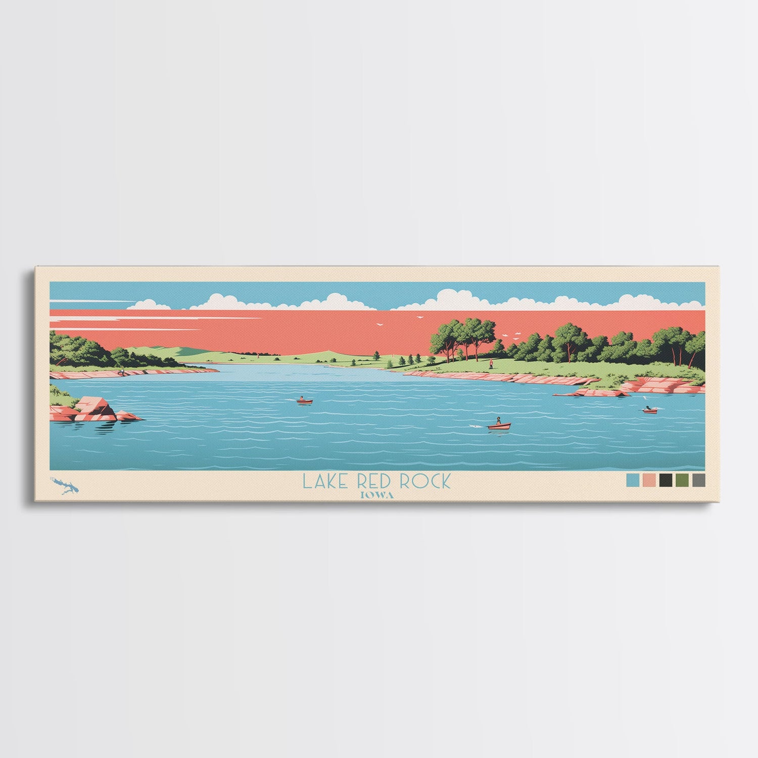 Lake Red Rock Iowa Framed Canvas Print, Panoramic Wall Art, Midcentury Modern, Pop Art, Living Room Decor, Travel Poster, Lake House Art