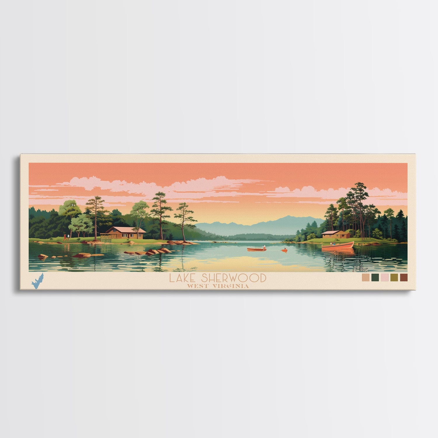 Lake Sherwood West Virginia Framed Canvas Print, Panoramic Wall Art, Midcentury Modern, Pop Art, Living Room Decor, Travel Poster, Lake House Art