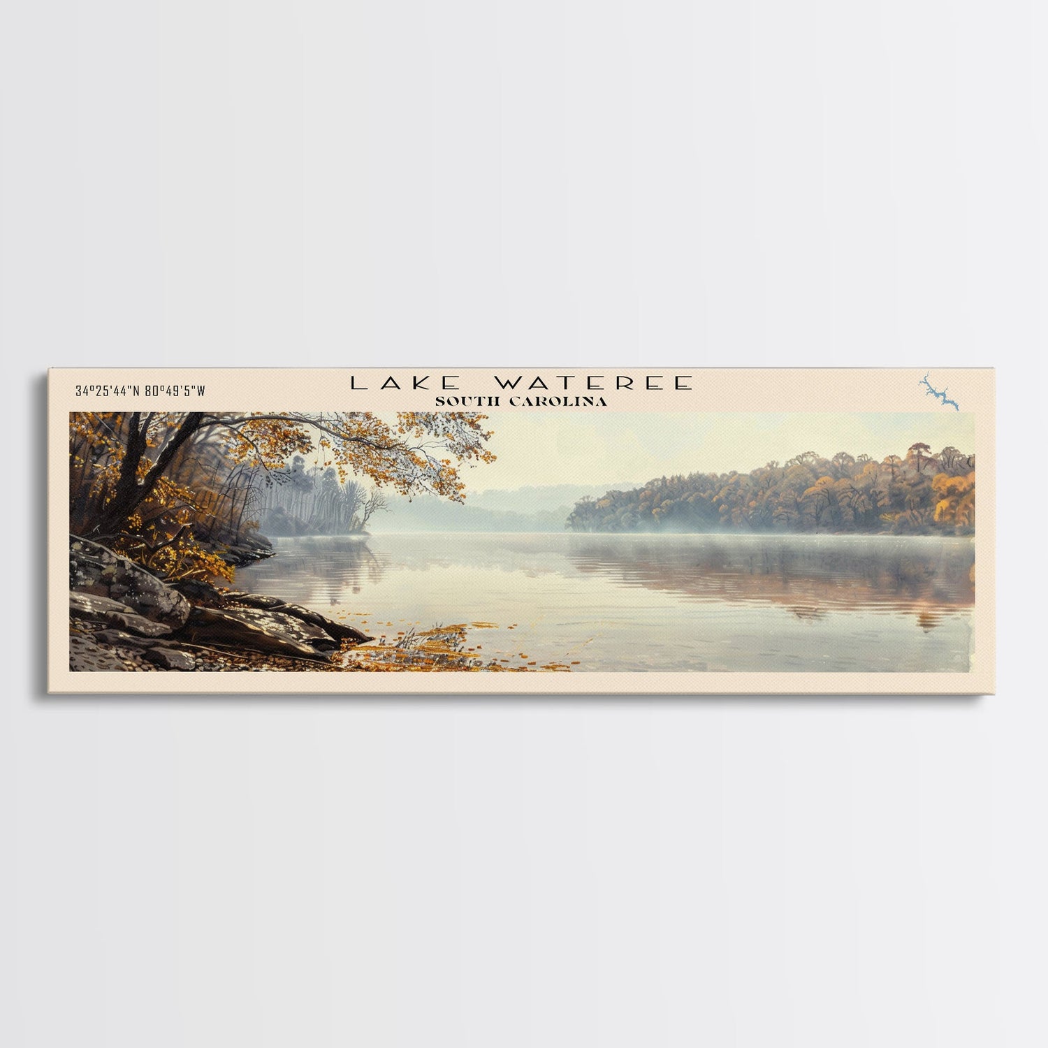 Lake Wateree South Carolina Framed Canvas Print, Lake House Decor, Panoramic Wall Art, Travel Poster, Beautiful Landscape Painting, Modern Art
