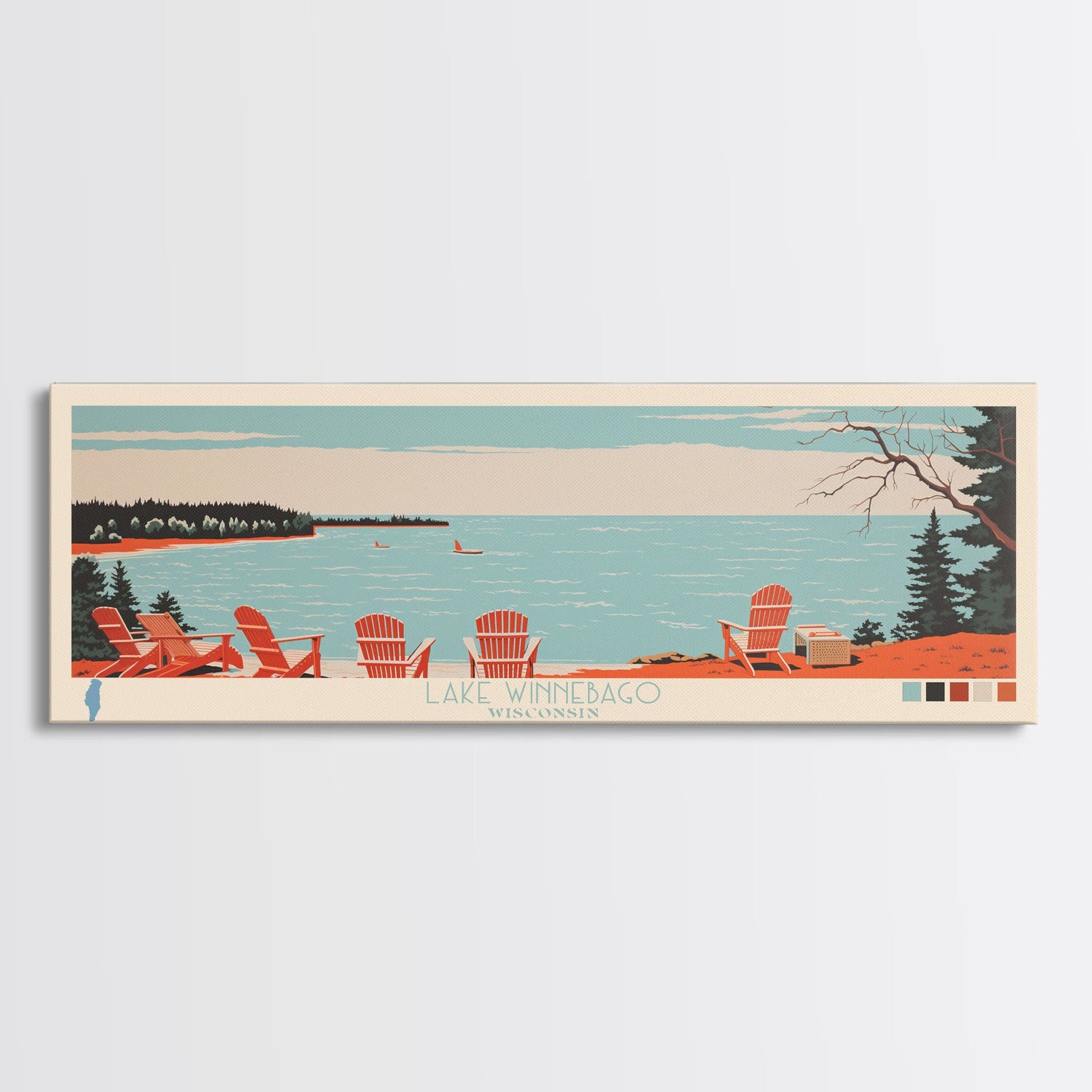 Lake Winnebago, Wisconsin Panoramic Wall Art Framed Canvas Print, Midcentury Modern, Pop Art, Home Decor, Travel Poster, Living Room Art