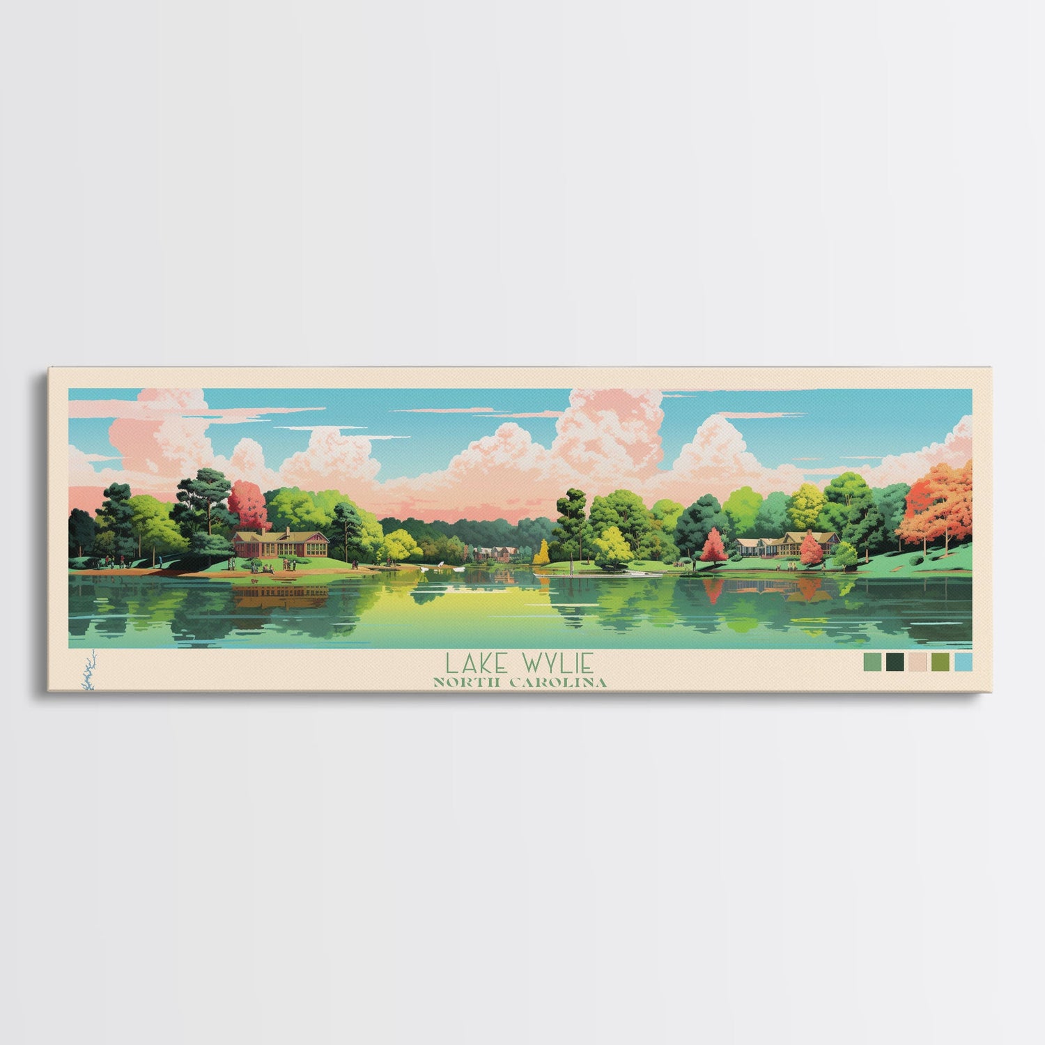 Lake Wylie, North Carolina Panoramic Wall Art Framed Canvas Print, Midcentury Modern, Pop Art, Home Decor, Travel Poster, Bedroom Art