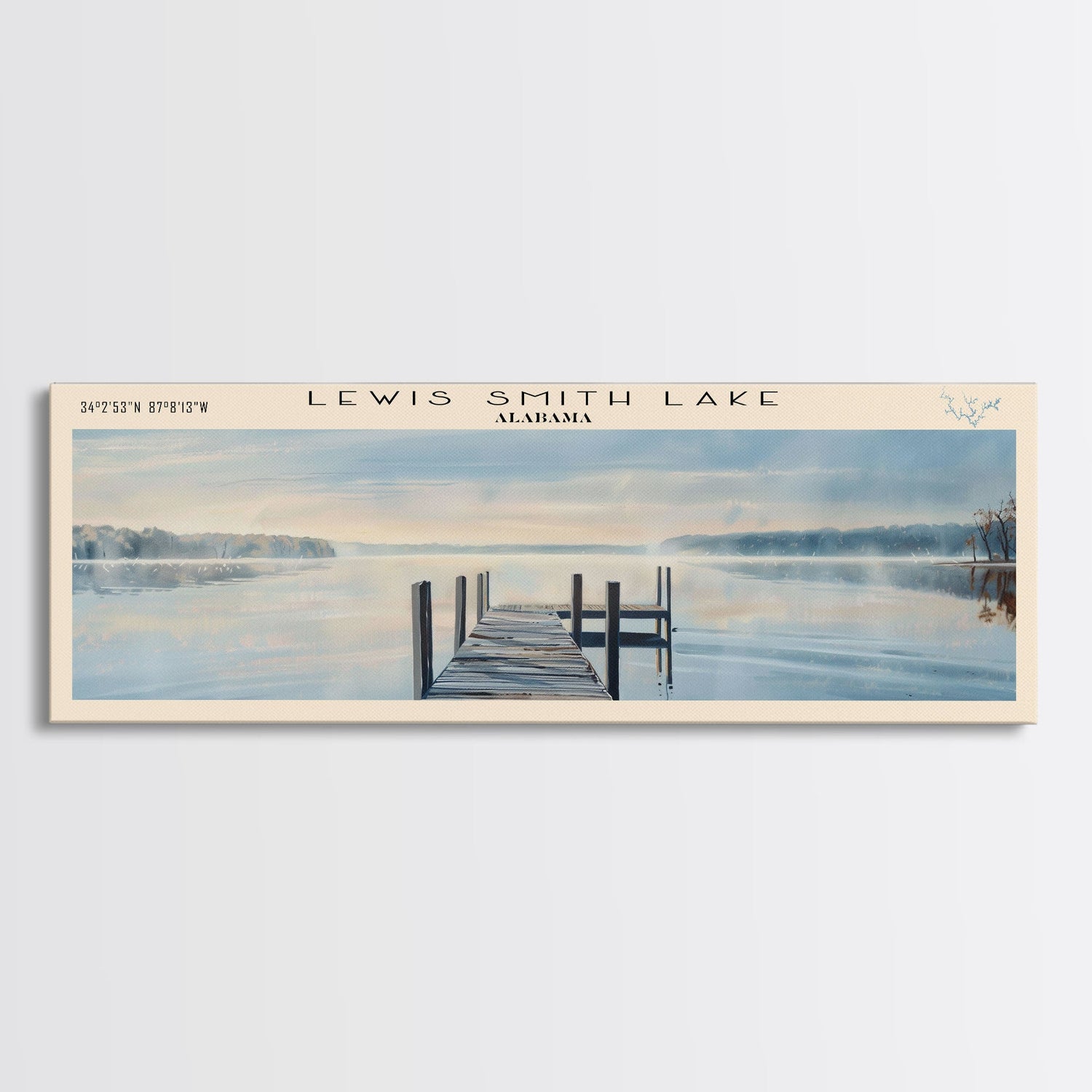 Lewis Smith Lake Alabama Framed Canvas Print, Lake House Decor, Panoramic Wall Art, Travel Poster, Landscape Painting, Modern Art