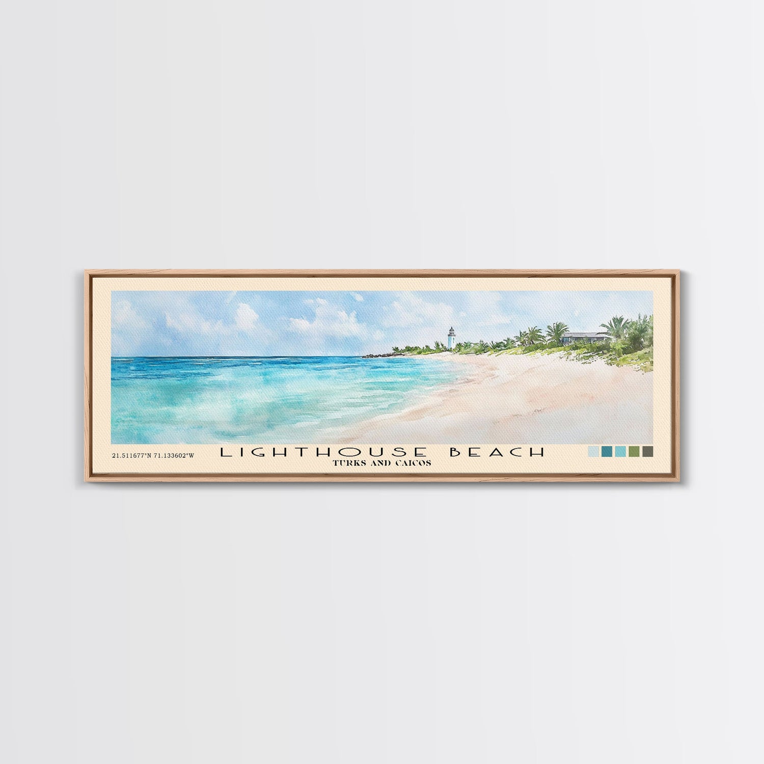 Lighthouse Beach, Turks and Caicos Watercolor Beach Print, Vacation Gift, Turks and Caicos Wall Art, Framed Canvas Print, Framed Beach Painting