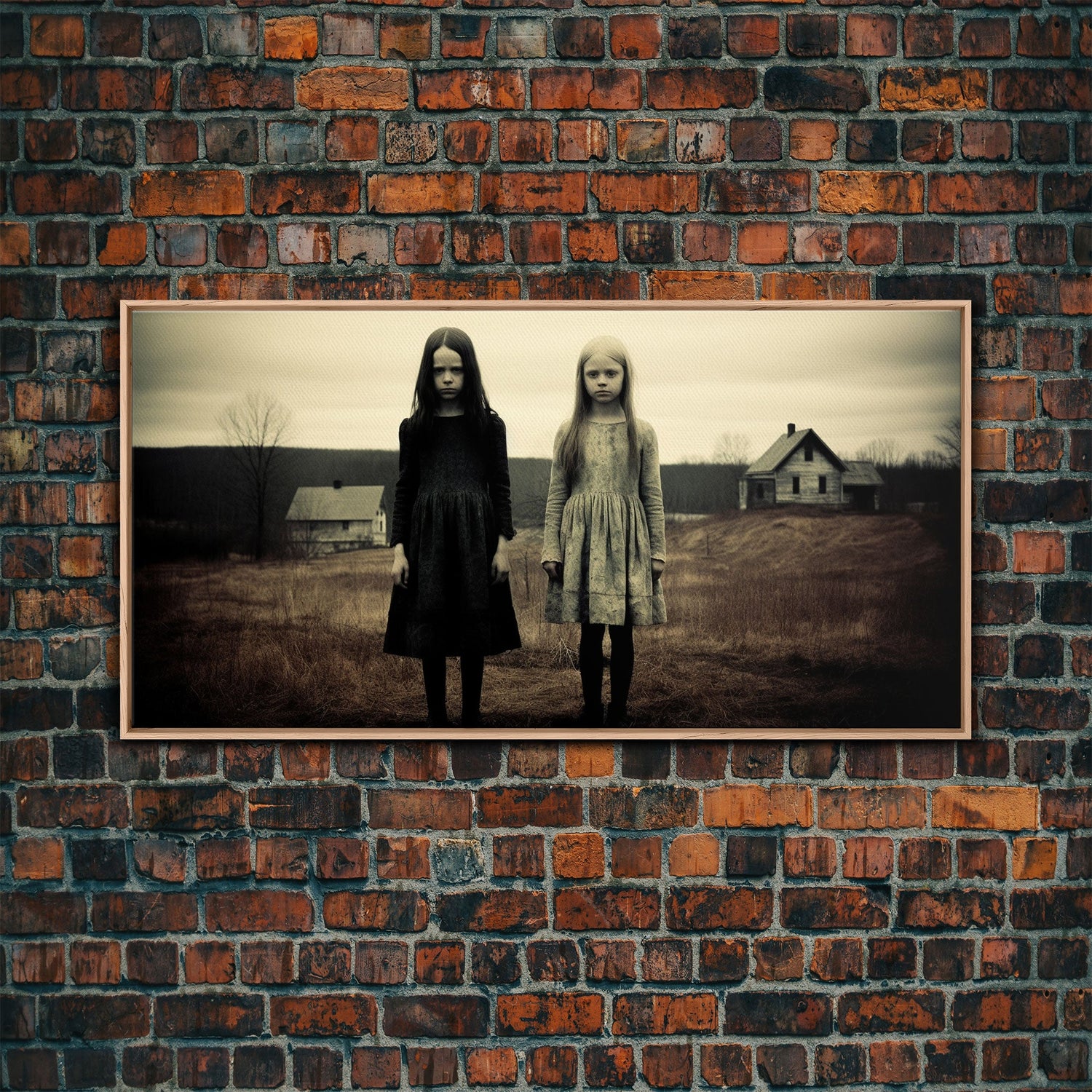 Little Witches Gothic Victorian Haunted Art, Spooky Halloween Decor, Framed Canvas Print, Halloween Poster, Halloween Wall Art, Creepy Decor