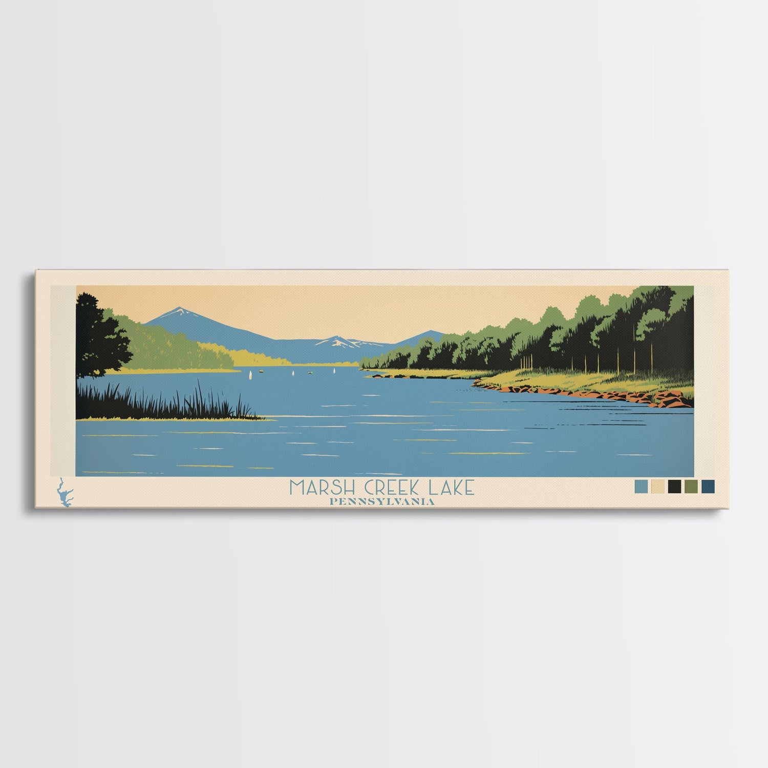 Marsh Creek Lake, Pennsylvania Panoramic Wall Art Framed Canvas Print, Midcentury Modern, Pop Art, Home Decor, Travel Poster, Bedroom Art