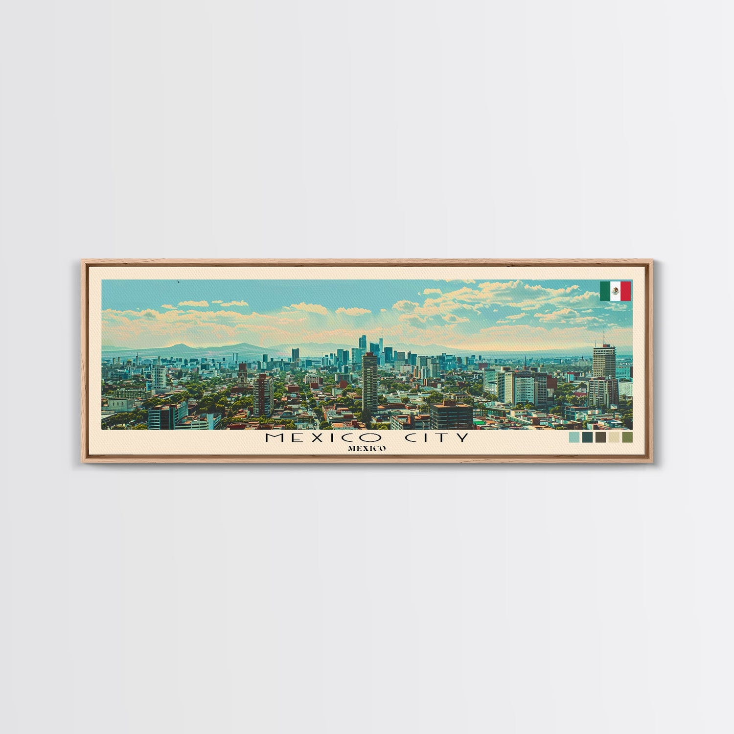 Mexico City, Mexico Panoramic Canvas Print, Mexico City, Mexico Painting, Mexico Art, Mexico City Travel Poster, Travel Art, Guest Room Painting