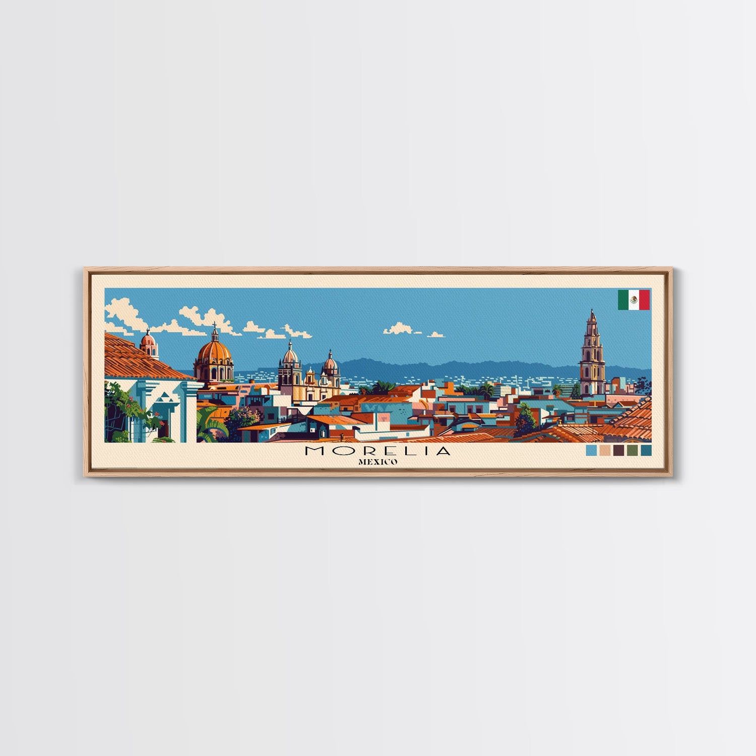 Morelia, Mexico Panoramic Canvas Print, Morelia, Mexico Painting, Mexico Art, Morelia Travel Poster, Travel Art, Vacation Gift