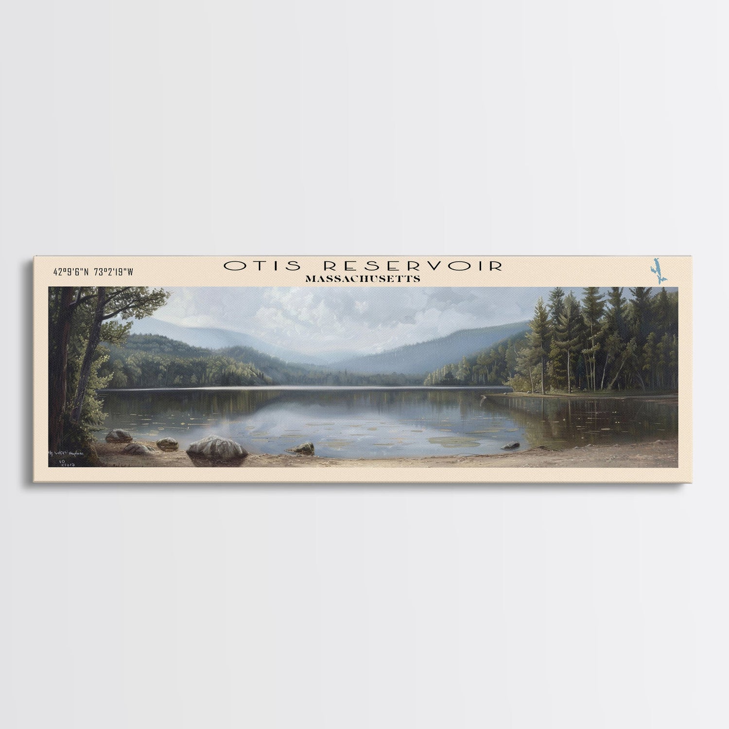 Otis Reservoir Massachusetts Framed Canvas Print, Lake House Decor, Panoramic Wall Art, Travel Poster, Landscape Painting, Bedroom Decor