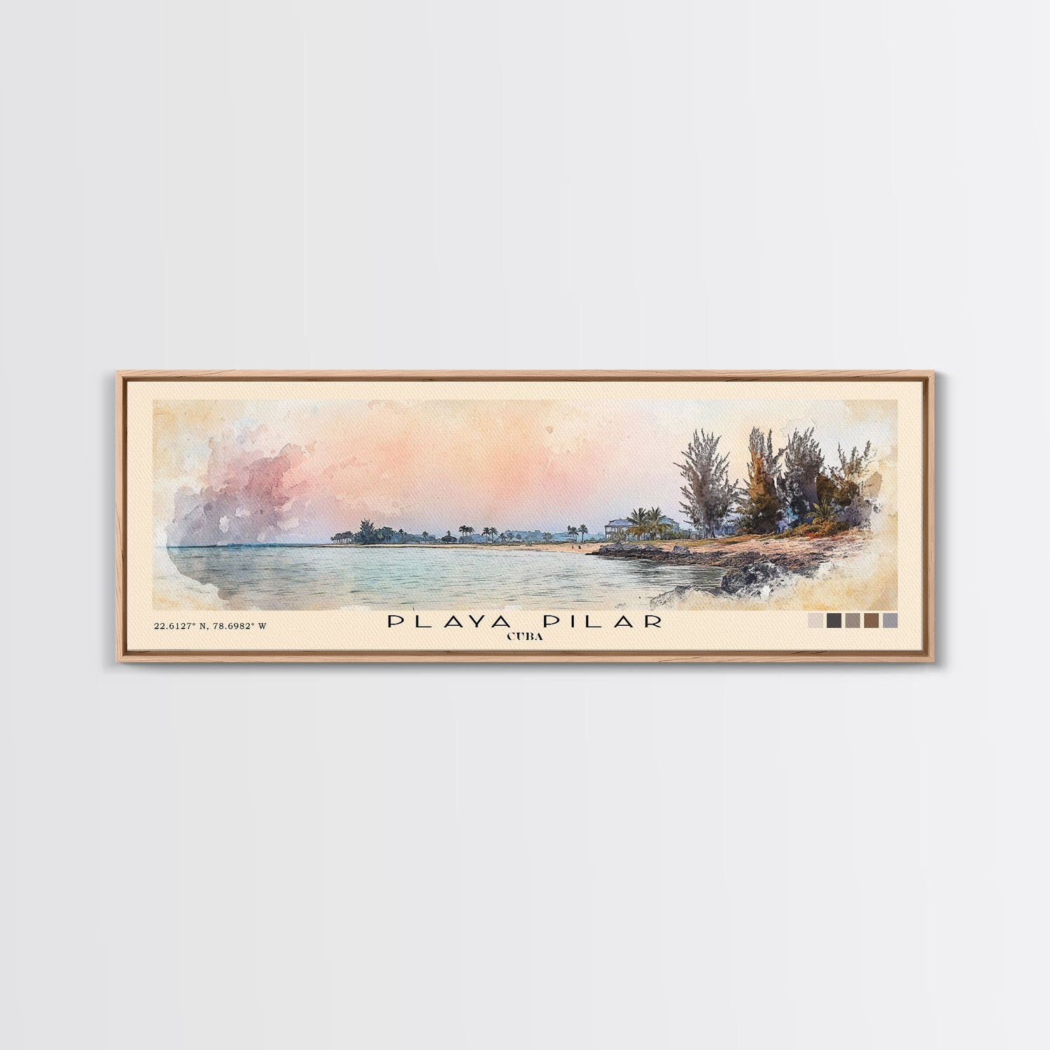 Playa Pilar, Cuba Watercolor Beach Print, Vacation Gift, Cuba Wall Art, Framed Canvas Print, Framed Beach Painting - 10x30 Inches / Gallery Wrap Canvas - Ready To Hang está agotado y se enviará tan pronto como vuelva a estar disponible.