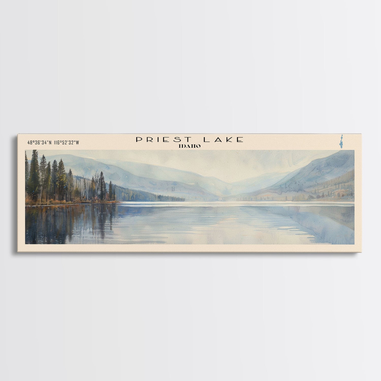 Priest Lake Idaho Framed Canvas Print, Lake House Decor, Panoramic Wall Art, Travel Poster, Beautiful Landscape Painting, Living Room Decor