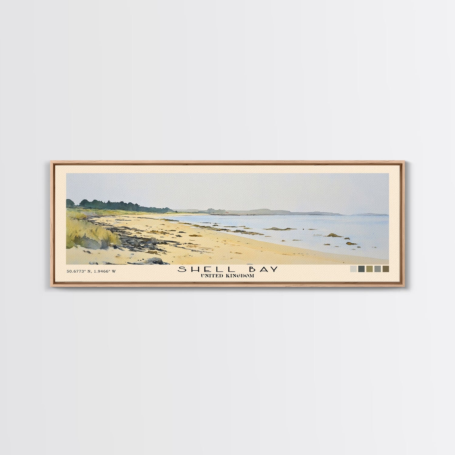 Shell Bay, United Kingdom Watercolor Beach Print, Vacation Gift, United Kingdom Wall Art, Framed Canvas Print, Framed Beach Painting