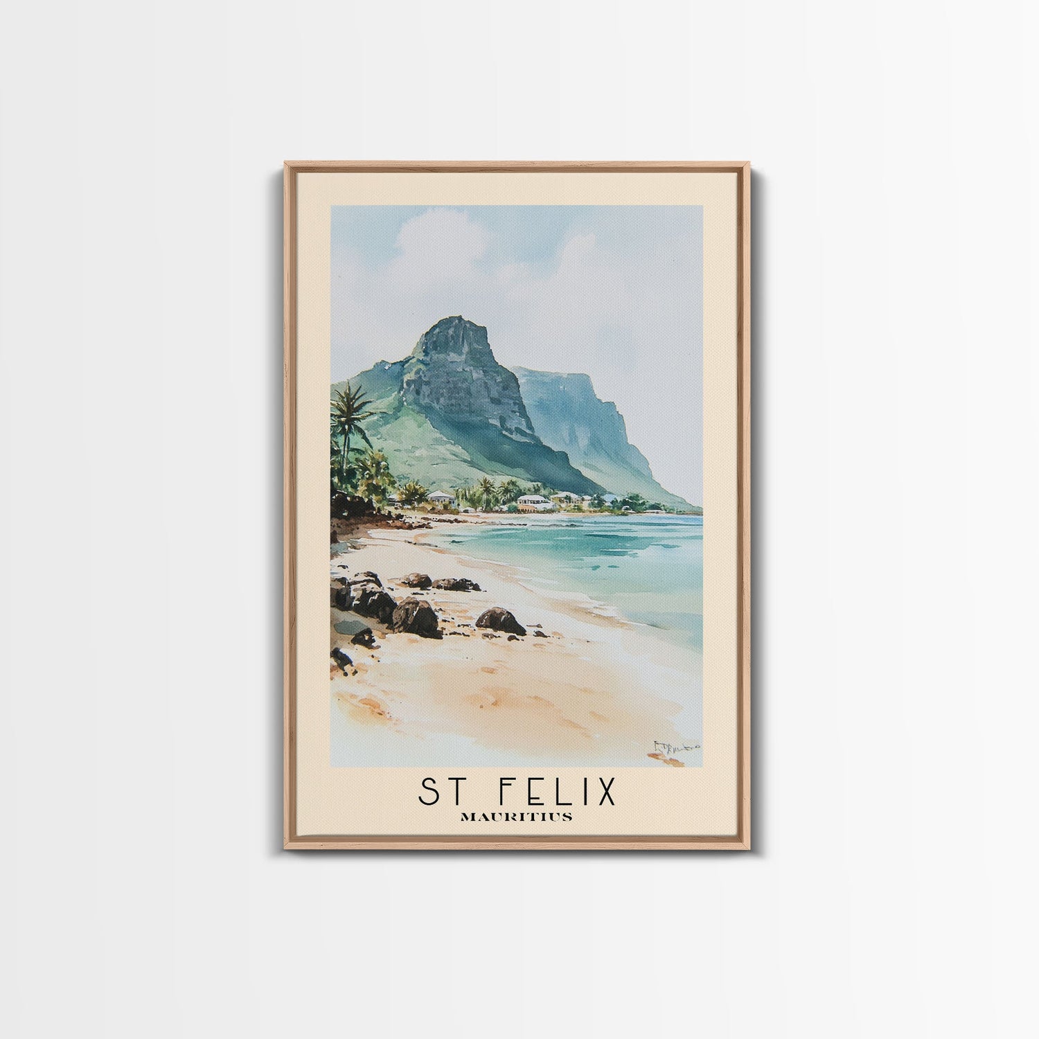 St Felix, Mauritius Watercolor Beach Print, Vacation Gift, Mauritius Wall Art, Framed Canvas Print, Framed Beach Painting
