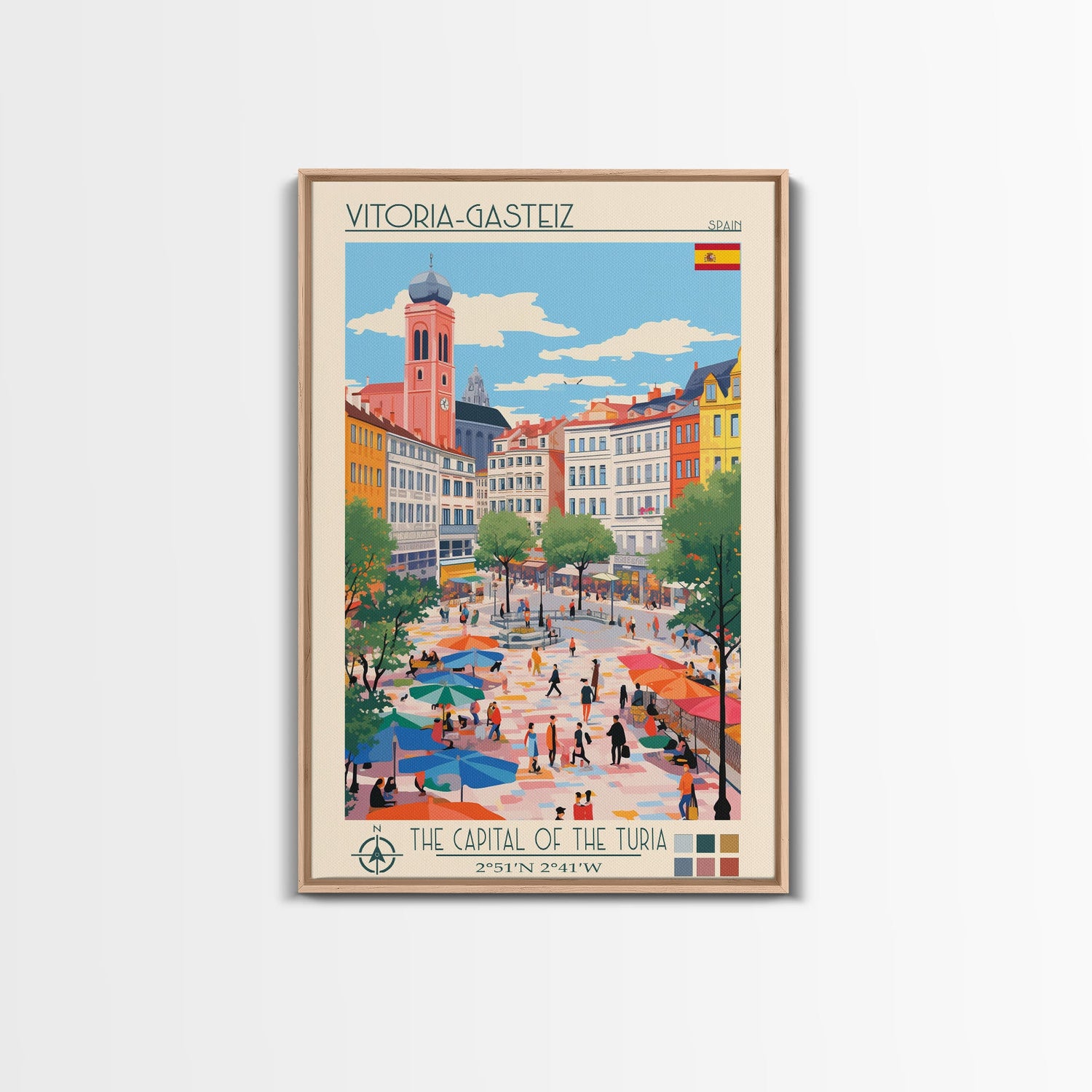 Vitoria-Gasteiz Spain Travel Poster Framed Canvas Print, Midcentury Modern Art, Pop Art Wall Decor, Living Room Art, Vacation Gift