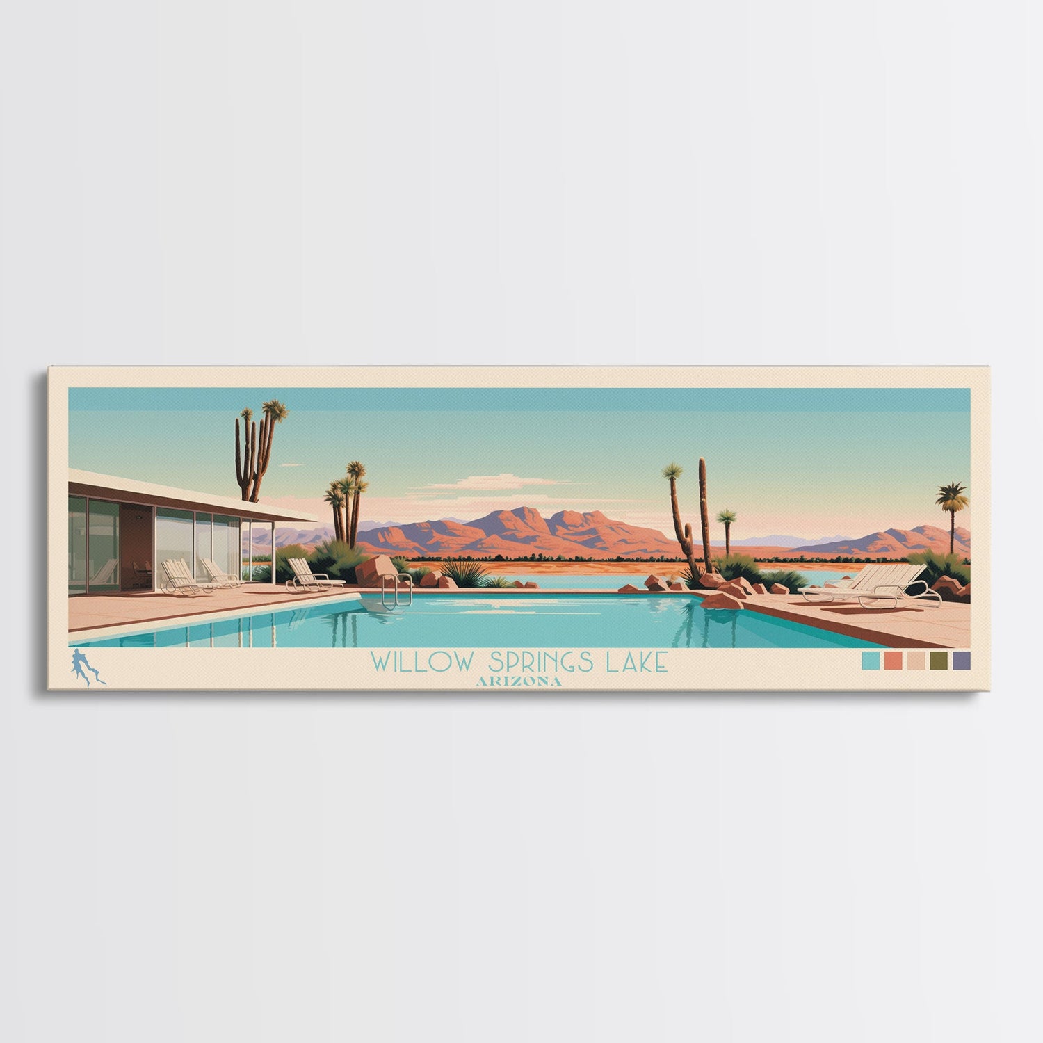 Willow Springs Lake, Arizona Panoramic Framed Canvas Print, Lake House Art, Midcentury Modern Decor, Pop Art, Travel Poster, Bedroom Wall Art