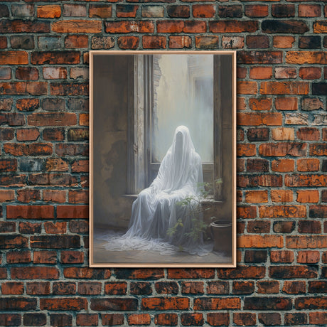 The Haunting, Ghost In The Window, Halloween Decor, Framed Canvas Print