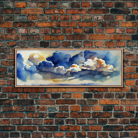 Watercolor Sunrise, Ready To Hang Canvas Print, Panoramic Art, Watercolour Landscape Art Wall Decor