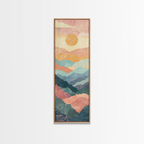 Abstract Sunset Over Rolling Hills, Japanese Art-Inspired Tall Framed Canvas Print for Wall Art