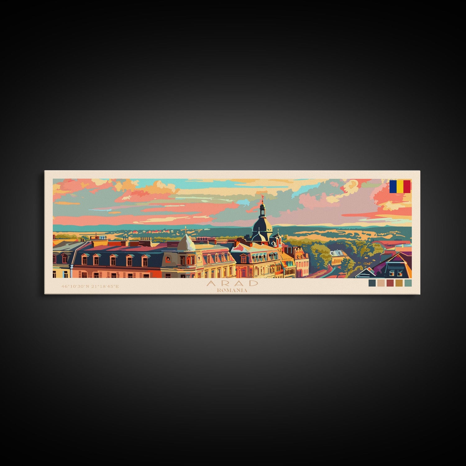 Arad Romania Travel Art, City Art, Framed Canvas Print or Metal Wall Art, Europe Travel Poster, Panoramic Wall Art, Extra Wide Wall Art