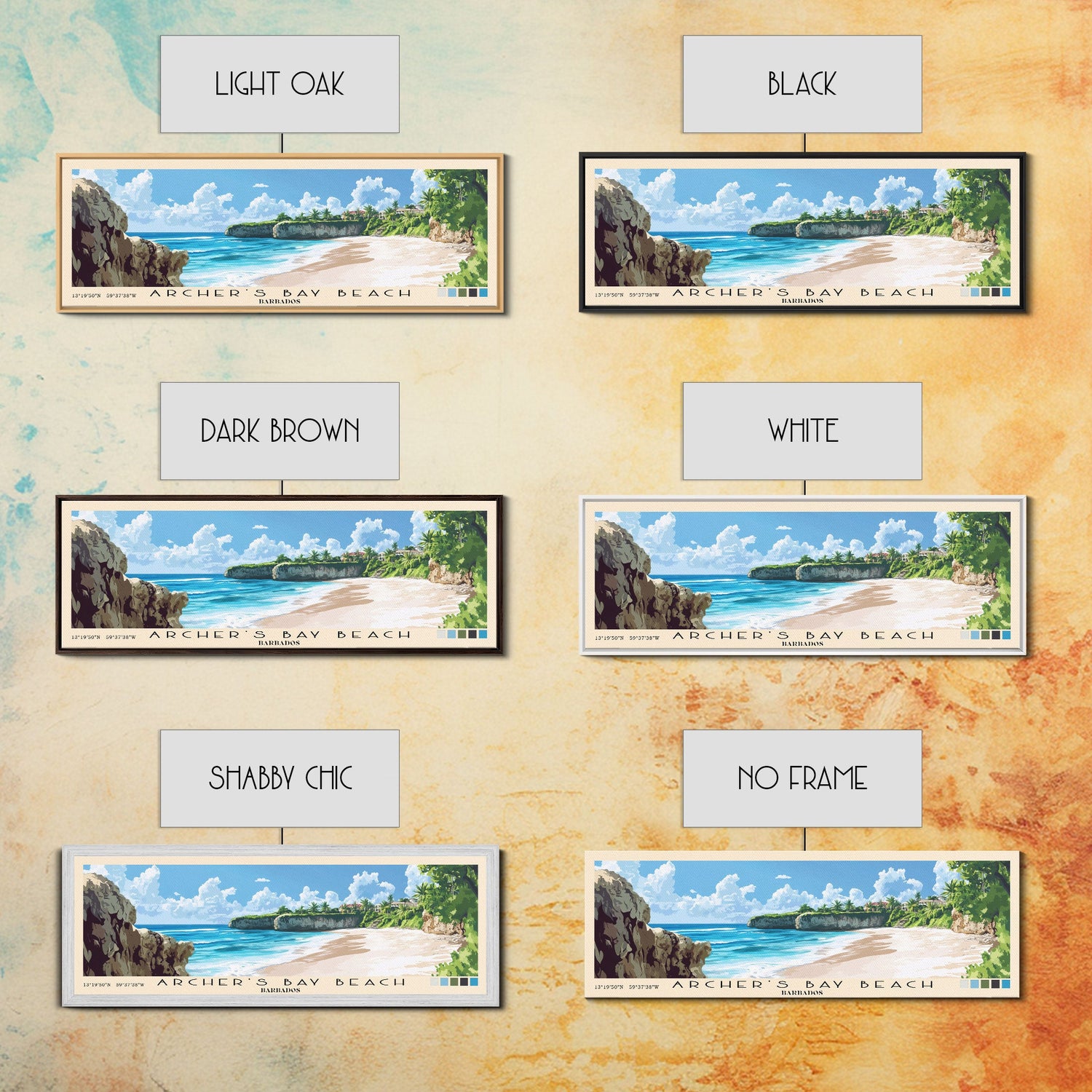 Archer’s Bay Beach, Barbados Panoramic Beach Print, Vacation Gift, Barbados Wall Art, Framed Canvas Print, Framed Beach Painting