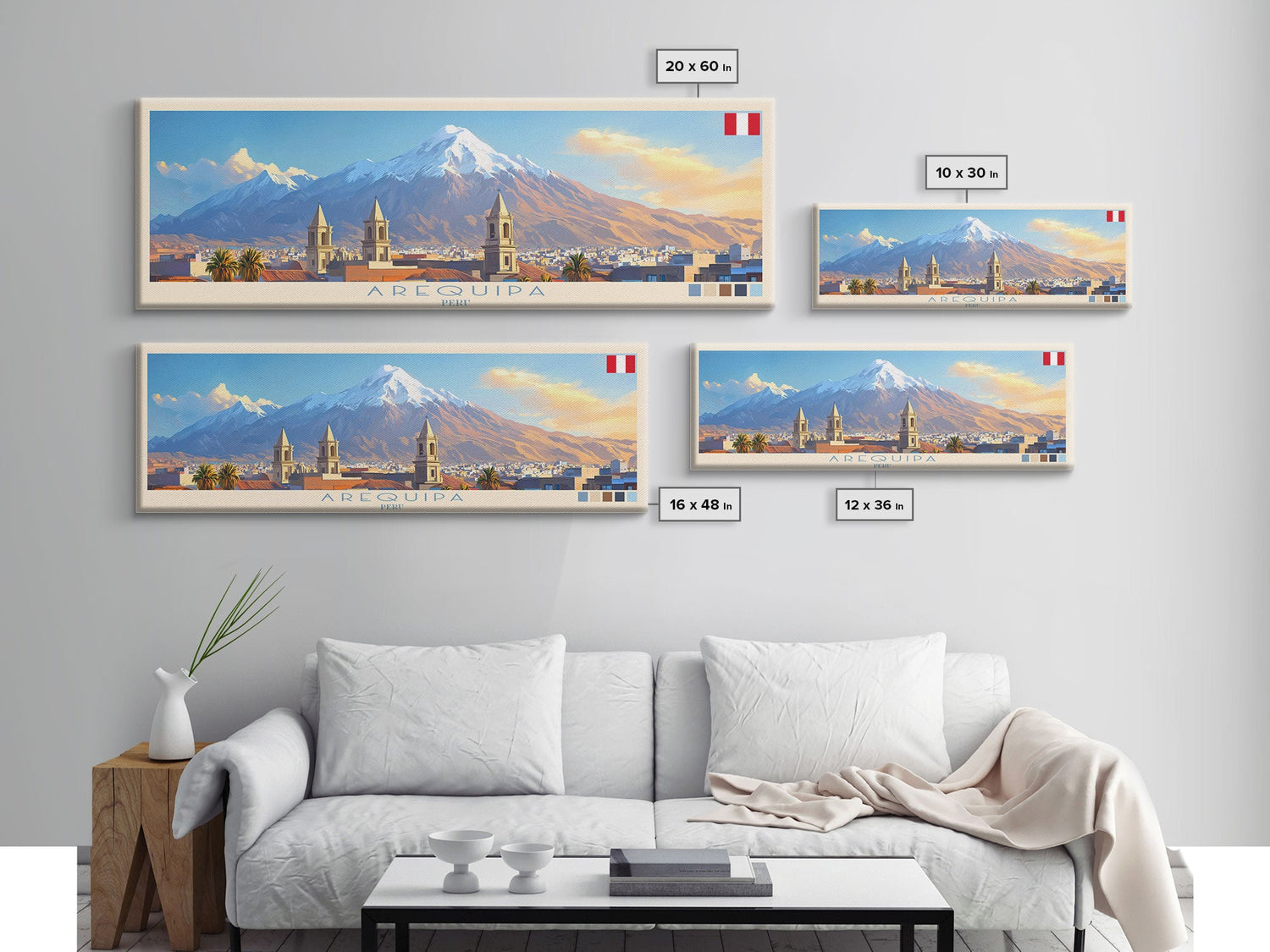 Arequipa, Peru Travel Poster Panoramic Canvas Print, Arequipa, Peru Painting, Peru Art, Arequipa Travel Art, Guest Room Painting