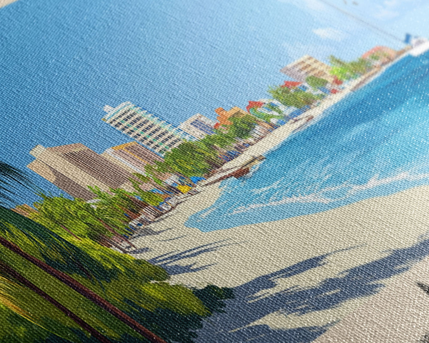 Most of our canvases are made in the USA, with the exception of canvases ordered with the light oak unstained frames, and any large canvases (24x48, 30x60, 16x48 and 20x60) ordered WITH a frame. These are temporarily made in and shipped from Europe, while we try to find a more consistent supplier in the USA.