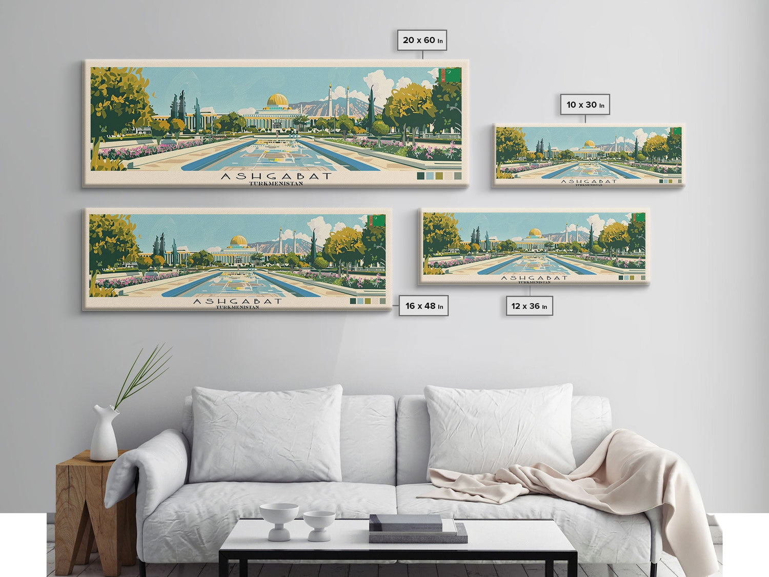 Ashgabat, Turkmenistan Panoramic Canvas Print, Ashgabat, Turkmenistan Painting, Turkmenistan Art, Ashgabat Travel Poster, Travel Art, Guest Room Painting