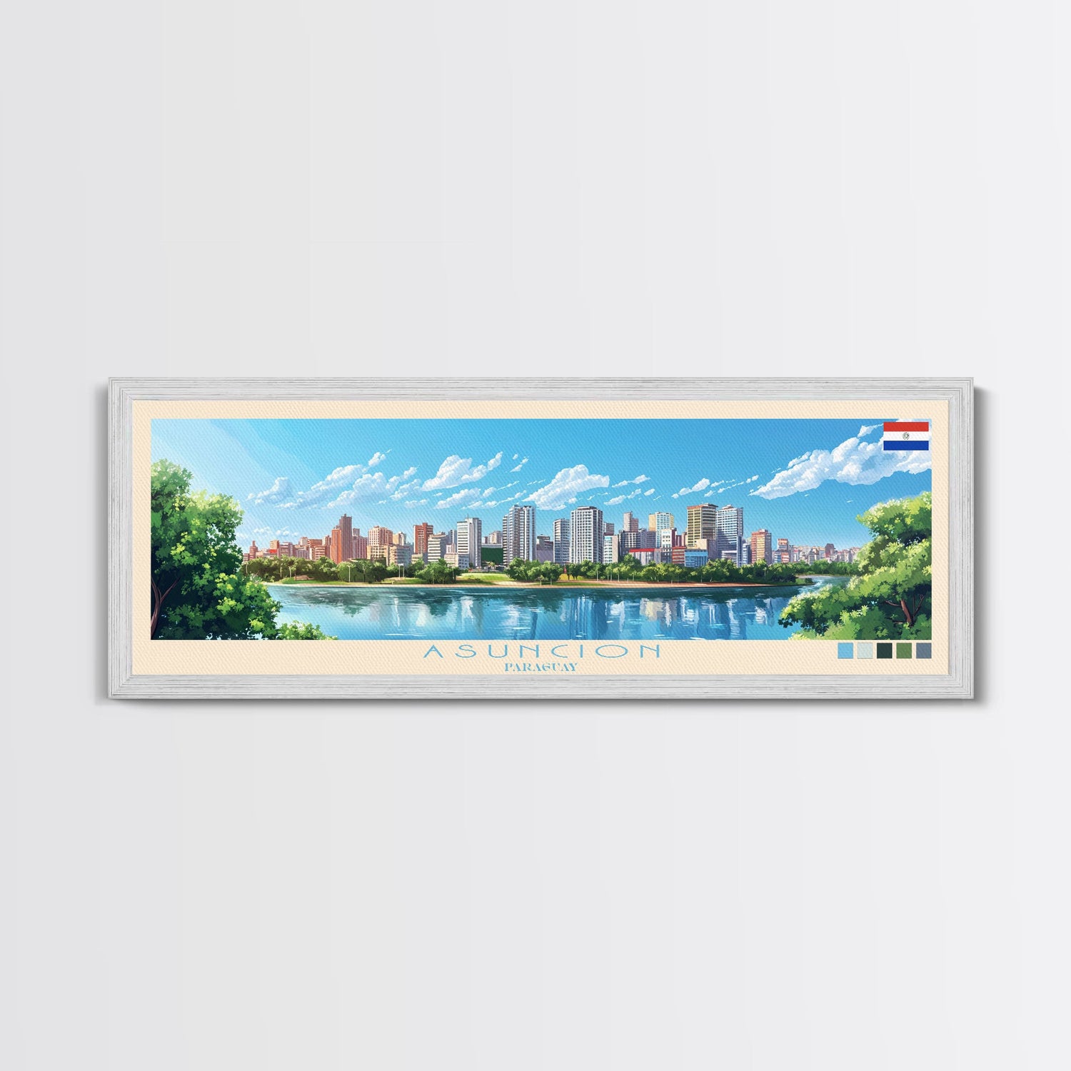 Asuncion, Paraguay Panoramic Travel Poster Canvas Print, Asuncion, Paraguay Painting, Paraguay Art, Asuncion Travel Art, Living Room Painting