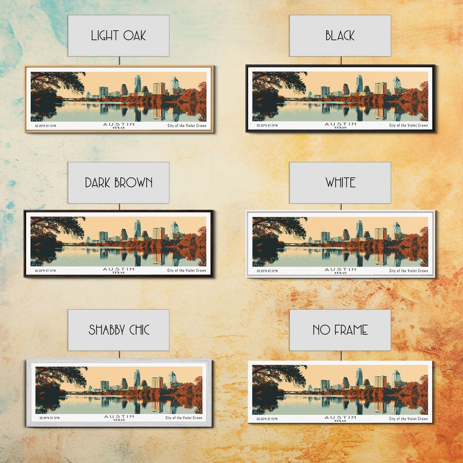 Austin Texas Panoramic Painting, Mid Century Modern Framed Canvas Print, Retro Pop Art Travel Poster, Home Decor, City Art - 10x30 Inches / No Frame - Stretched Canvas Only está agotado y se enviará tan pronto como vuelva a estar disponible.