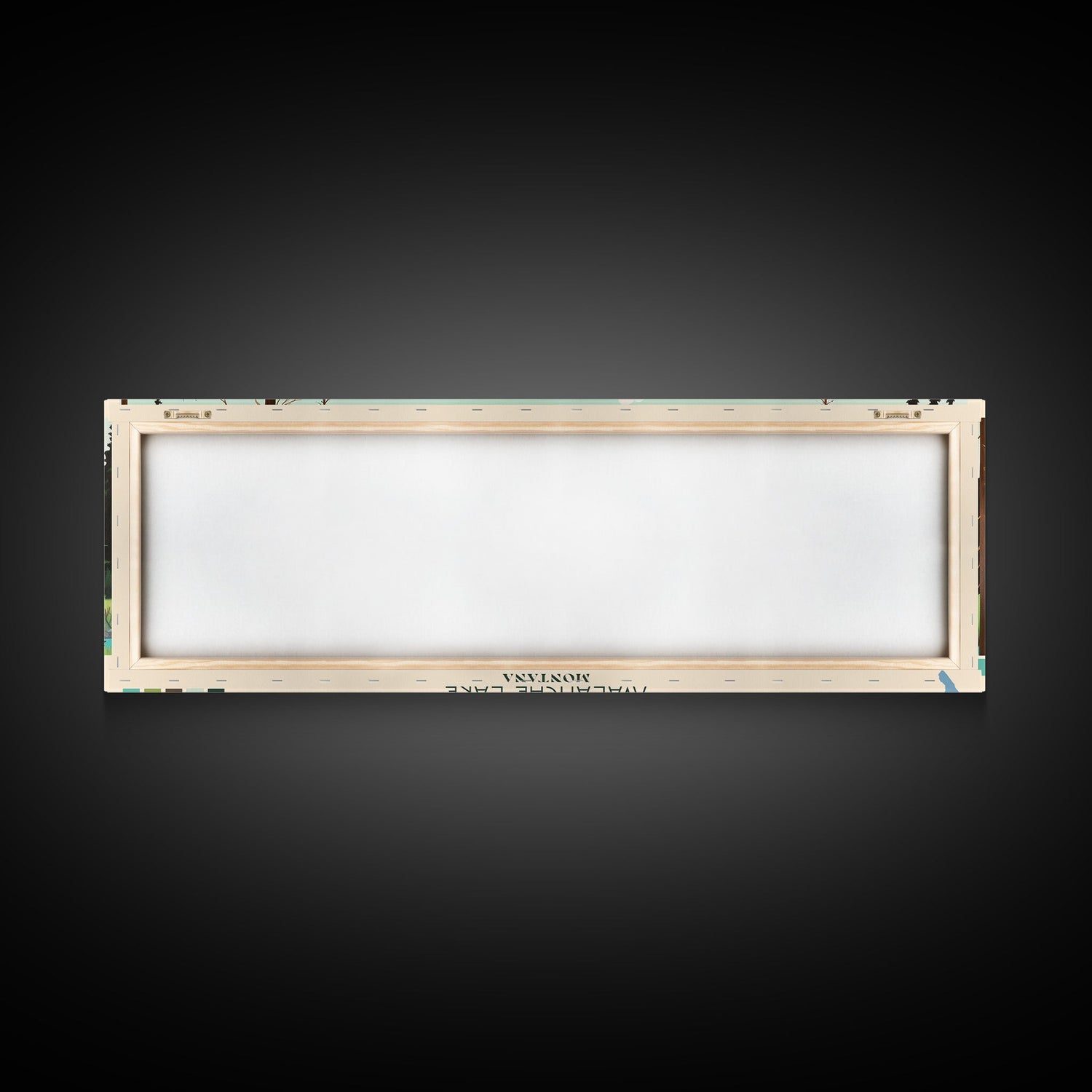 Avalanche Lake Montana Framed Canvas Print, Panoramic Wall Art, Midcentury Modern, Pop Art, Travel Poster, Scenic Living Room Art