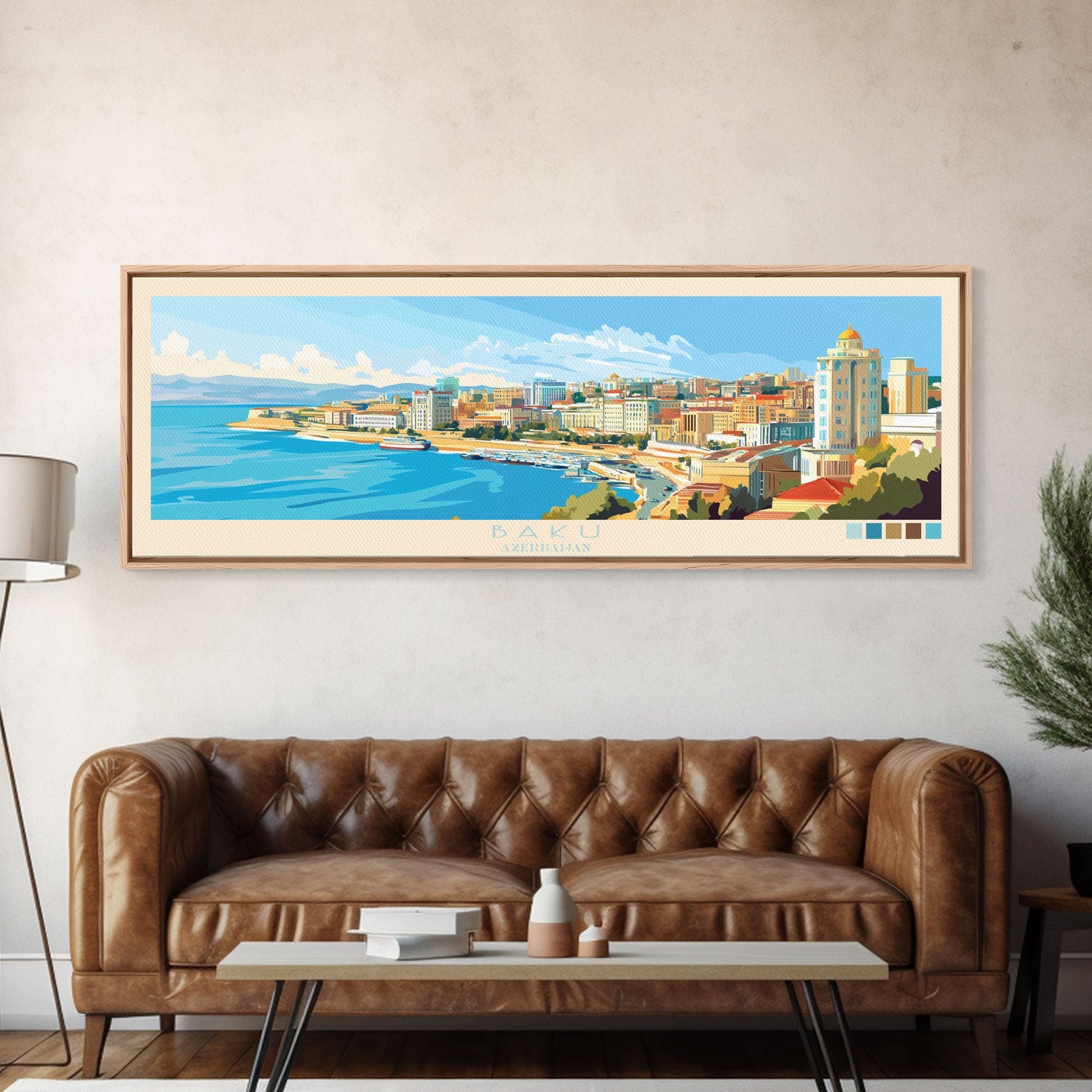 Baku, Azerbaijan Panoramic Travel Poster Canvas Print, Baku, Azerbaijan Painting, Azerbaijan Art, Baku Travel Art, Guest Room Painting