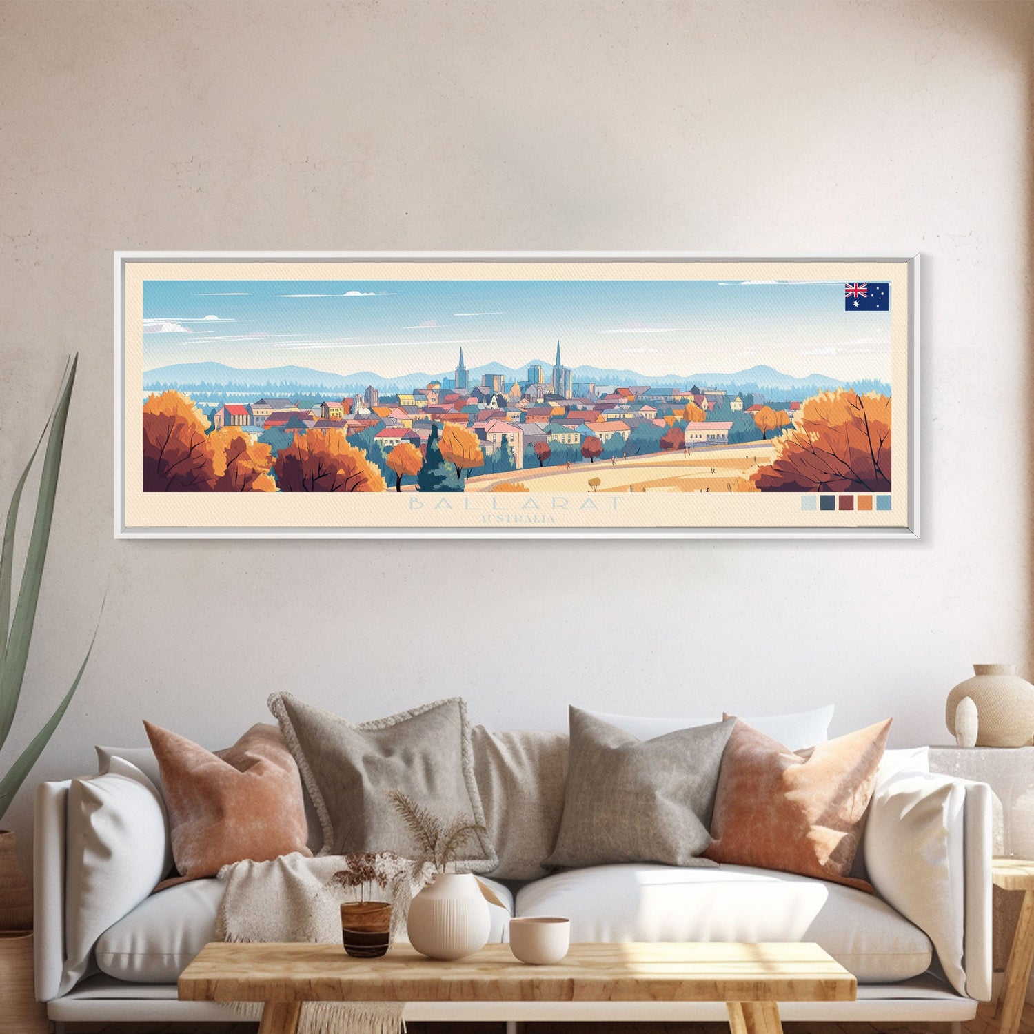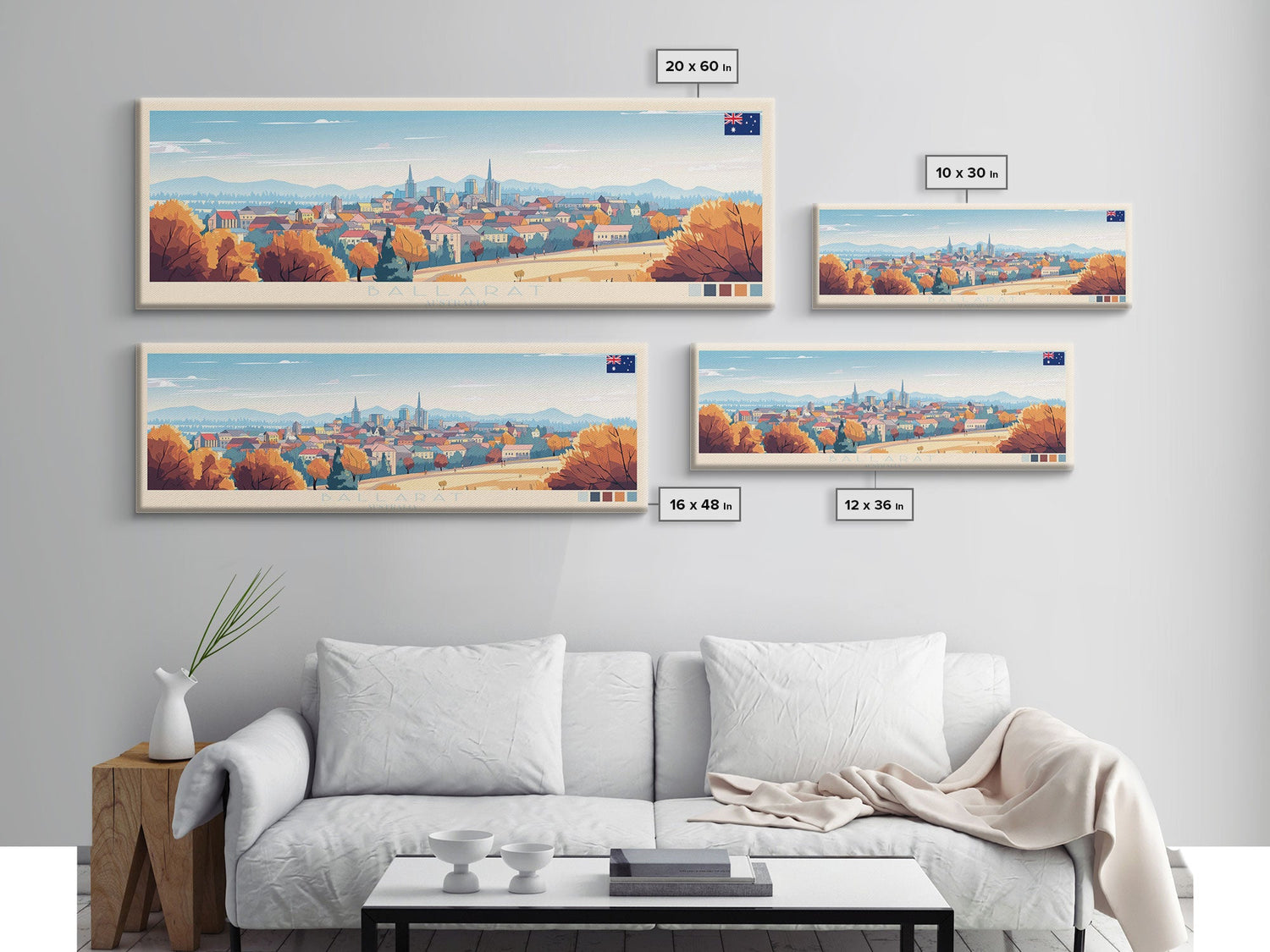 Ballarat, Australia Panoramic Travel Poster Canvas Print, Ballarat, Australia Painting, Australia Art, Ballarat Travel Art, Living Room Painting