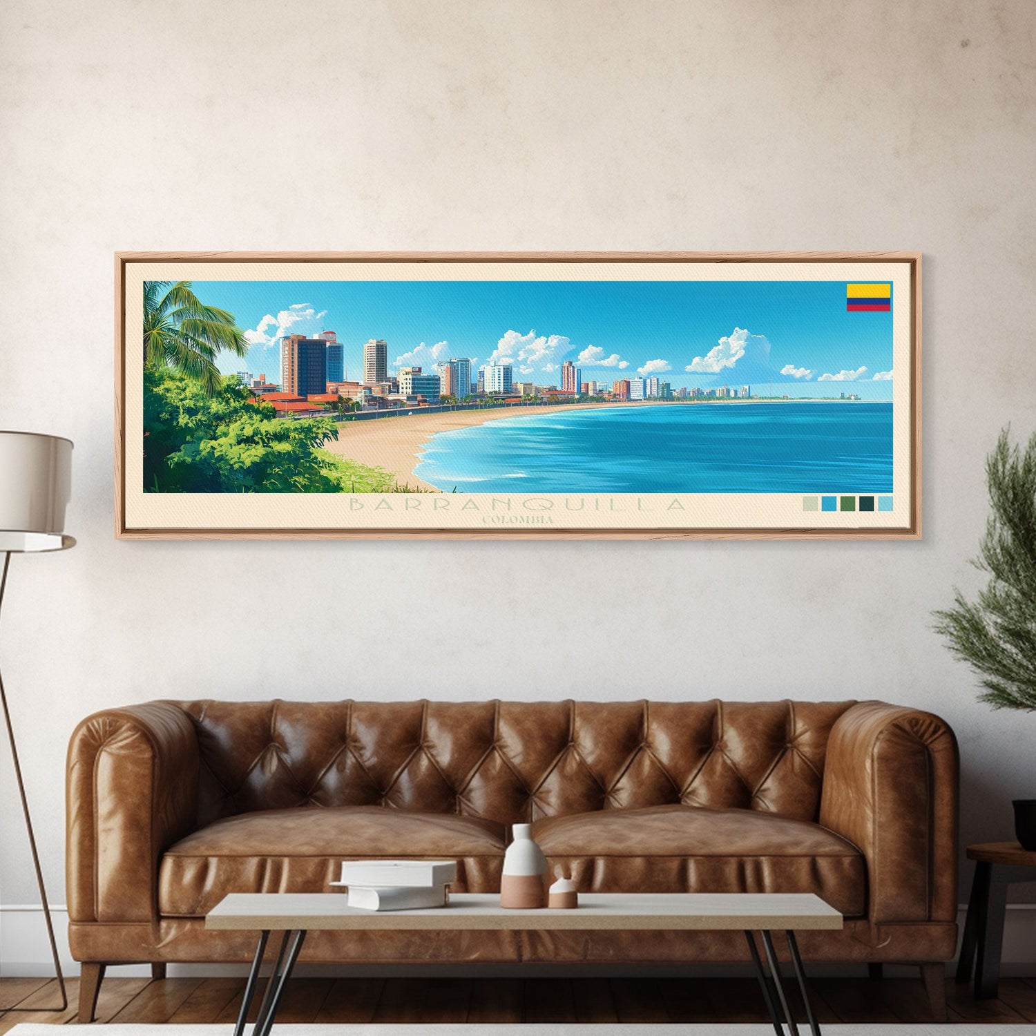Barranquilla, Colombia Travel Poster Panoramic Canvas Print, Barranquilla, Colombia Painting, Colombia Art, Barranquilla Travel Art, Guest Room Painting