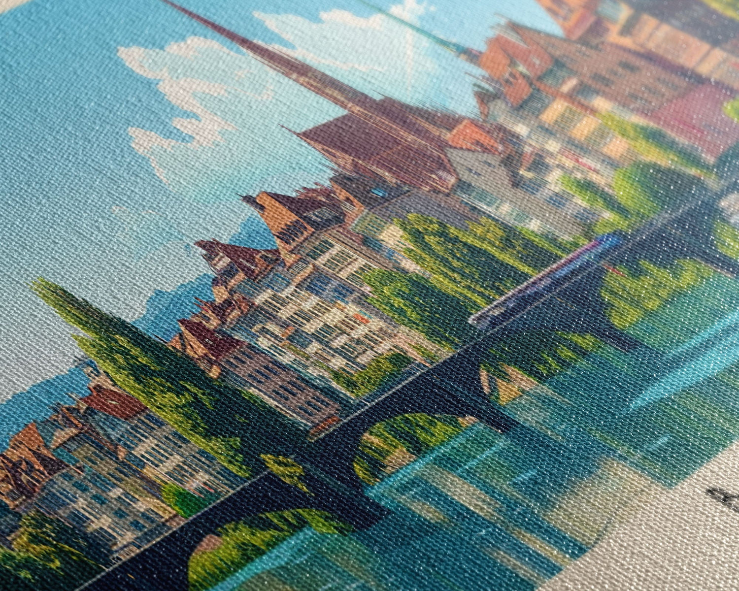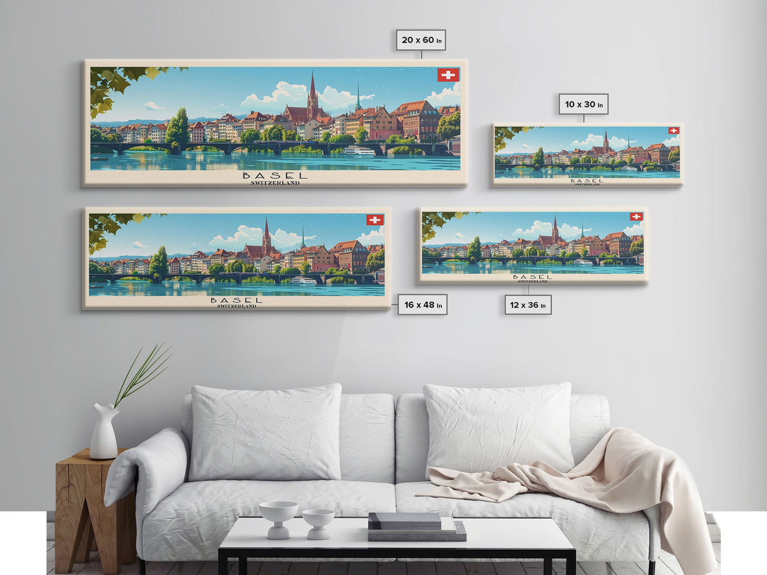 Basel SwitzerlandTravel Art, City Art, Framed Canvas Print or Metal Wall Art, Europe Travel Poster, Panoramic Wall Art, Extra Wide Wall Art
