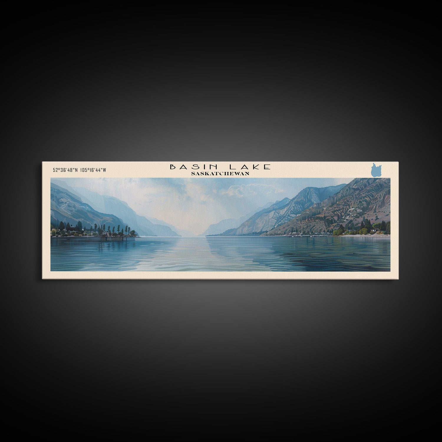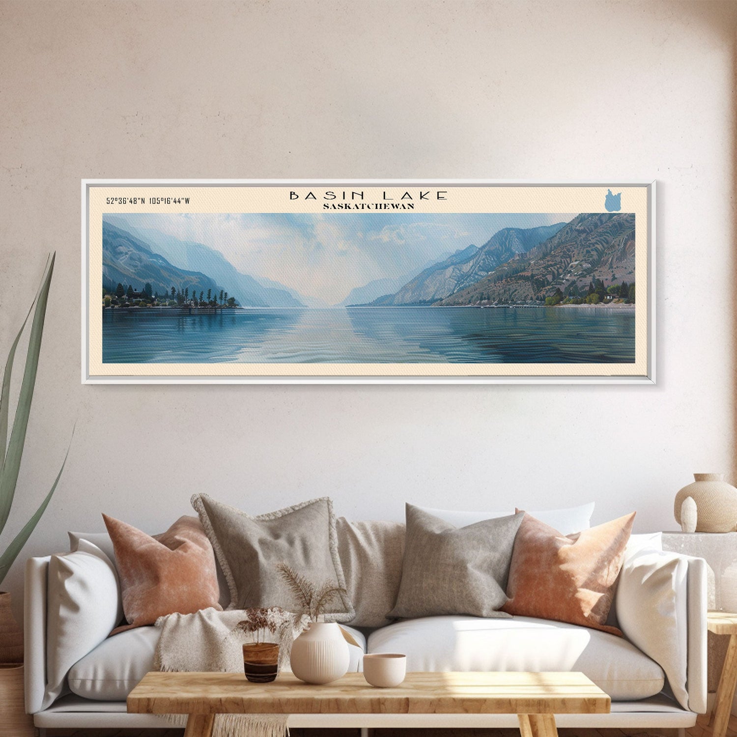Basin Lake Panoramic Framed Canvas Print, Lake House Decor, Scenic Painting, Travel Poster, Rustic Art, Nature Wall Art