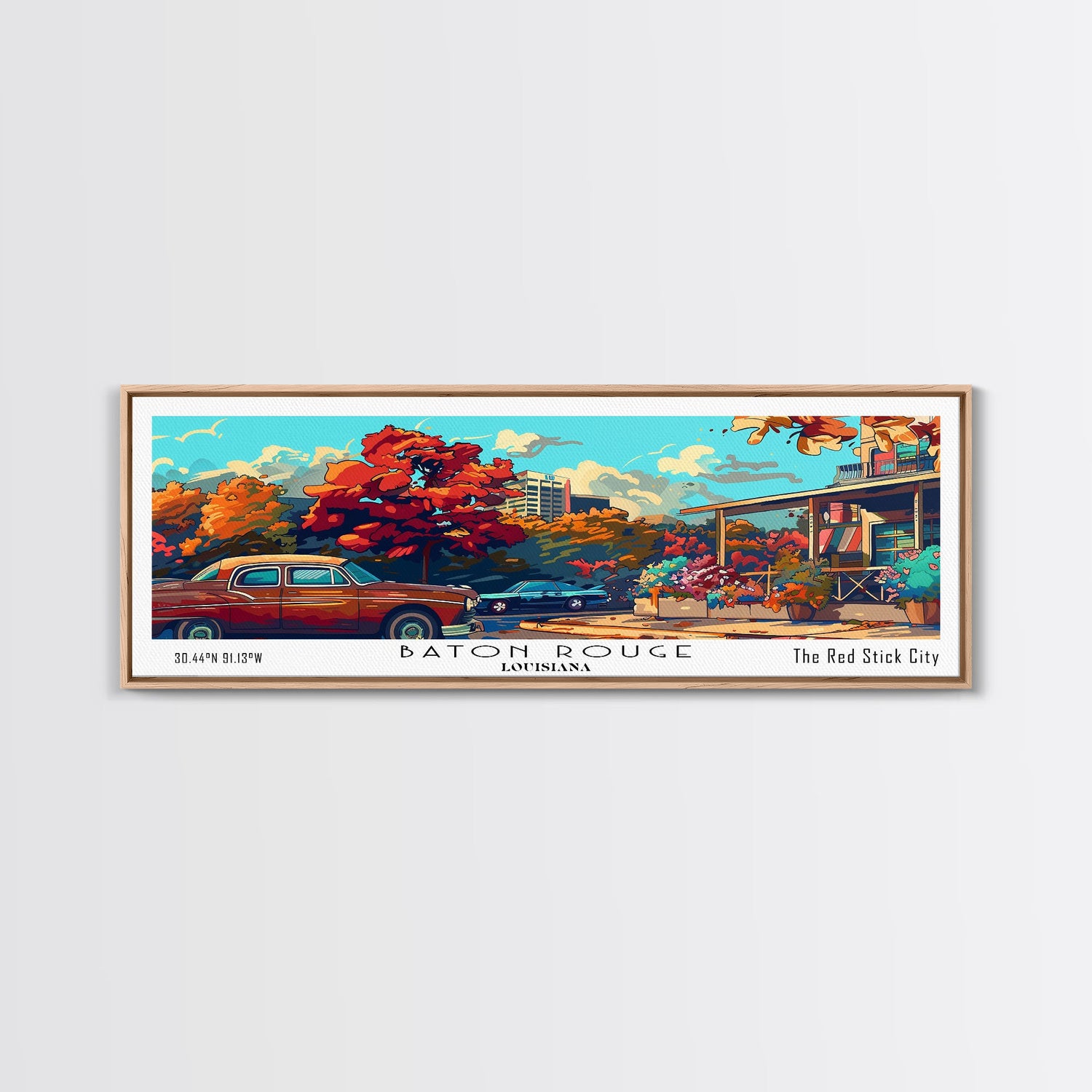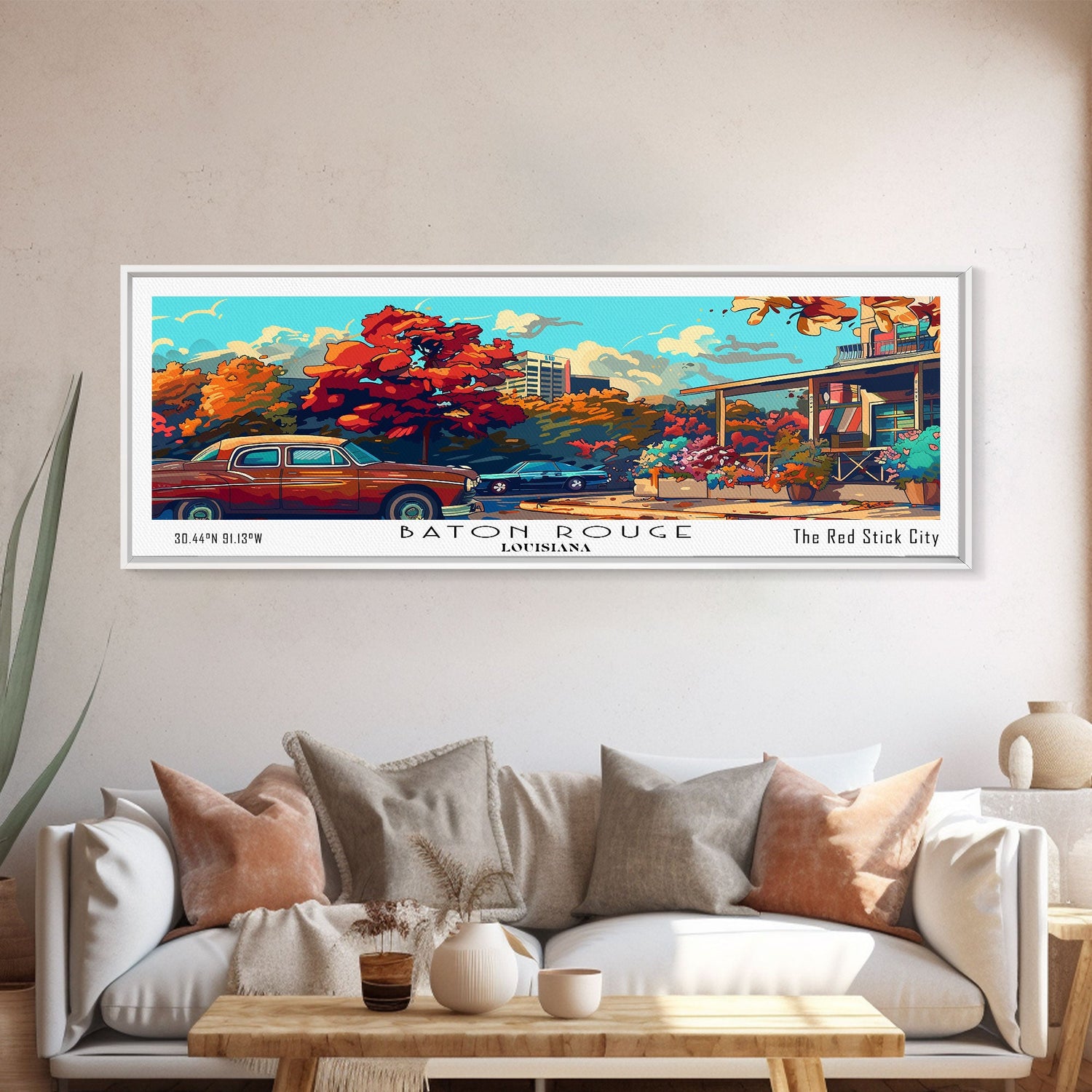 Baton Rouge Louisiana Panoramic Painting Framed Canvas Print, Mid Century Modern Art, Pop Art Style, Travel Poster, Wall Art Decor
