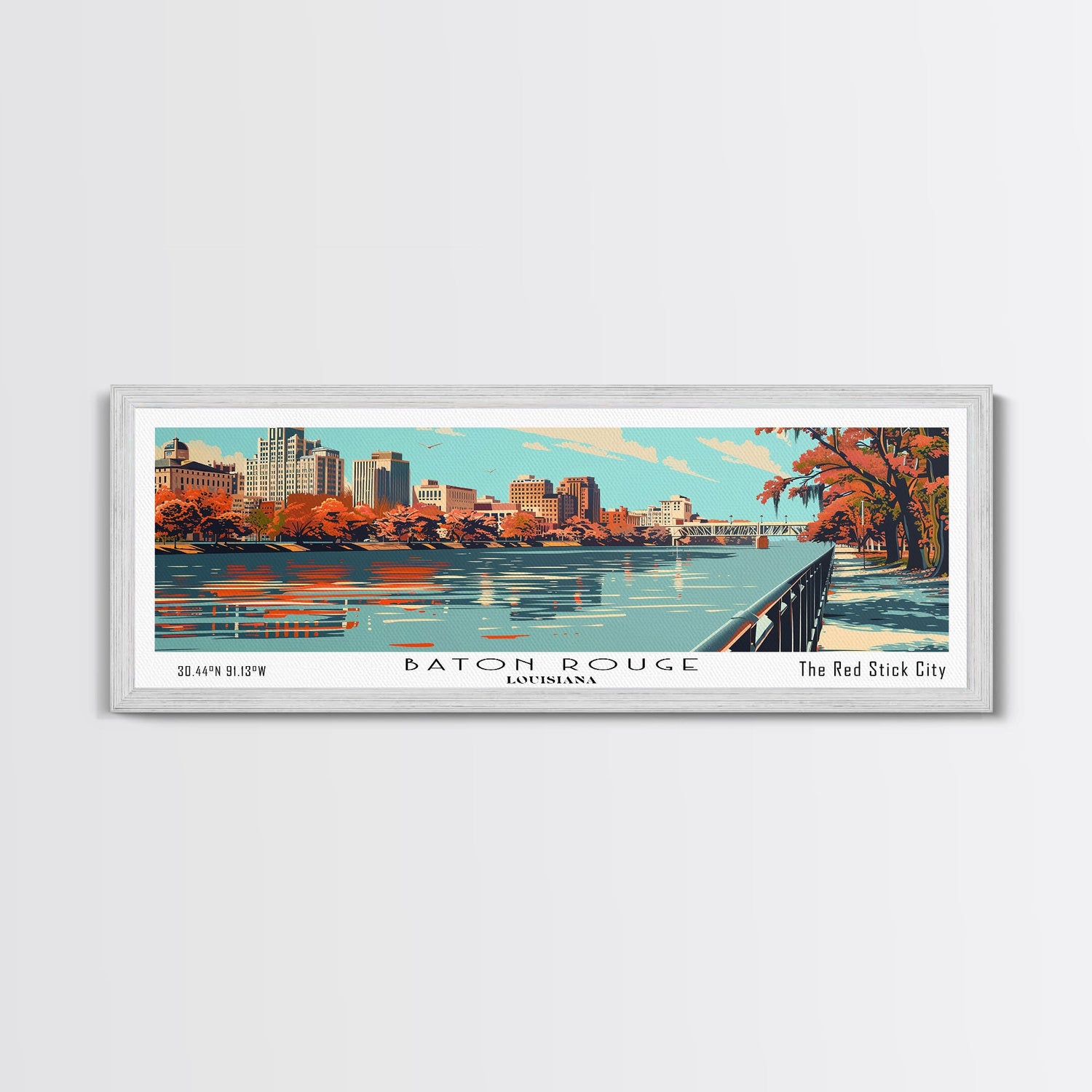 Baton Rouge Louisiana Panoramic Painting, Framed Canvas Print, Mid Century Modern Wall Art, Retro Pop Art Travel Poster, Living Room Decor, City Art