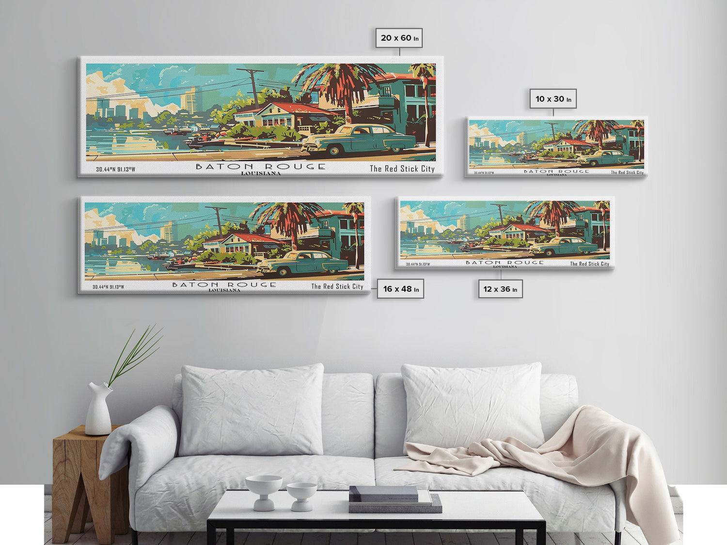 Baton Rouge Louisiana Panoramic Wall Art, Retro Pop Art Framed Canvas Print, Mid Century Modern Travel Poster, Living Room Decor, Office Art