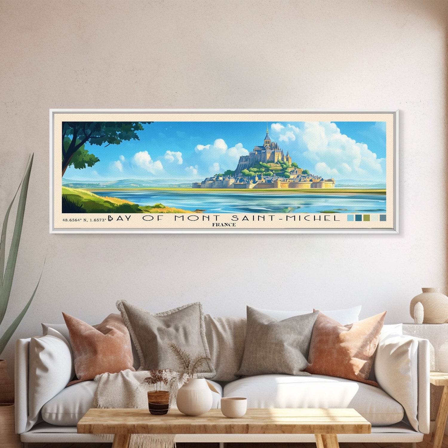Bay of Mont Saint-Michel, France Panoramic Beach Print, Vacation Gift, France Wall Art, Framed Canvas Print, Framed Beach Painting