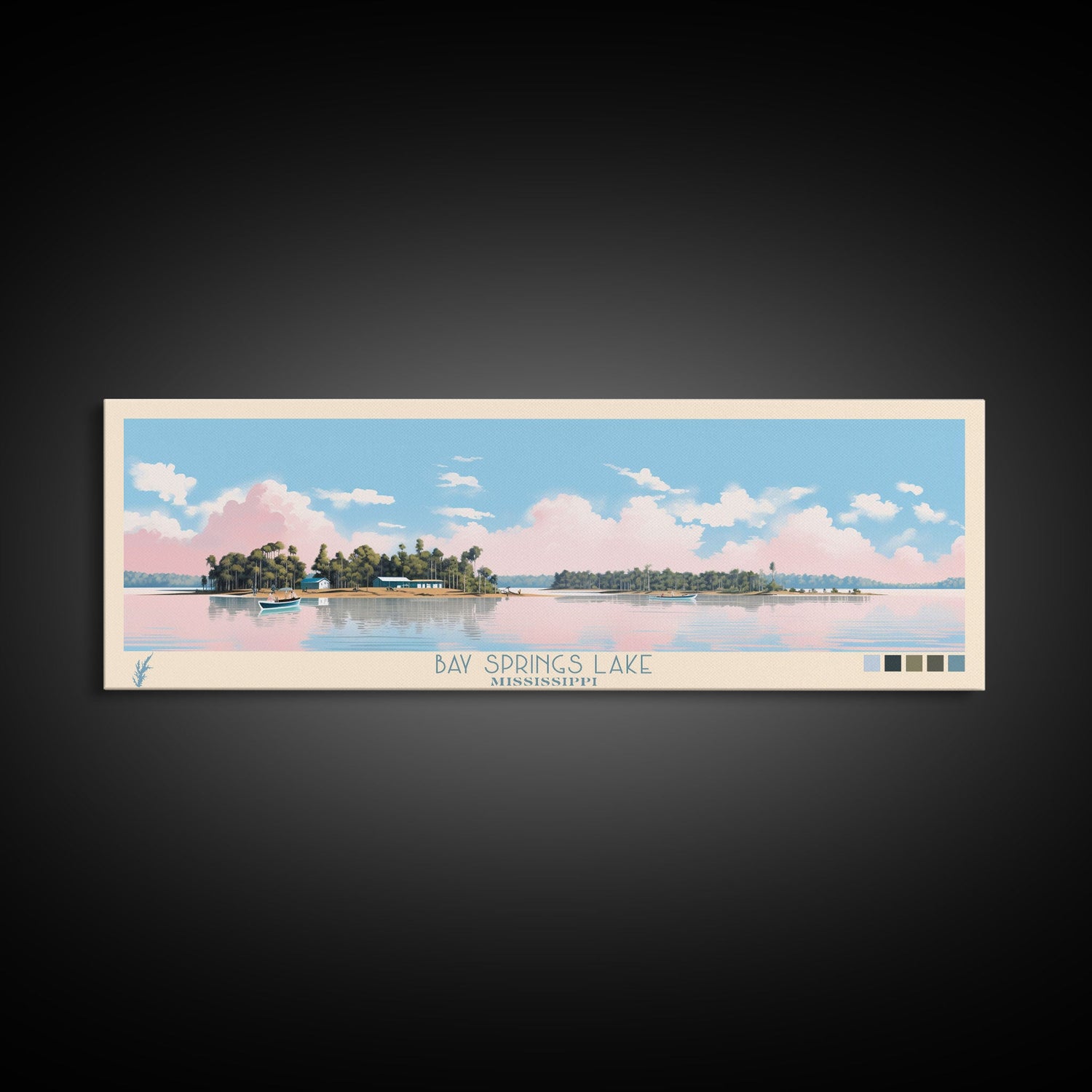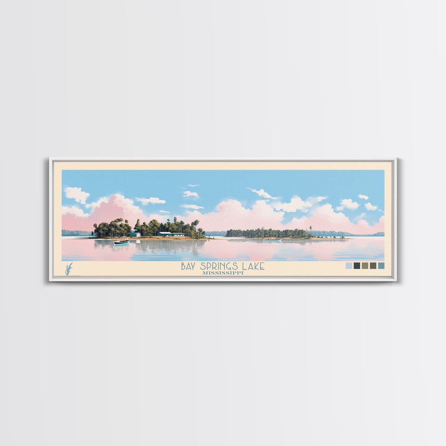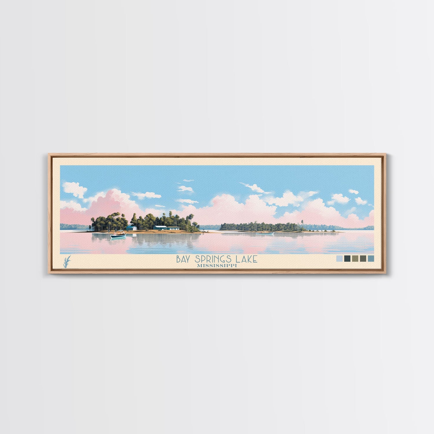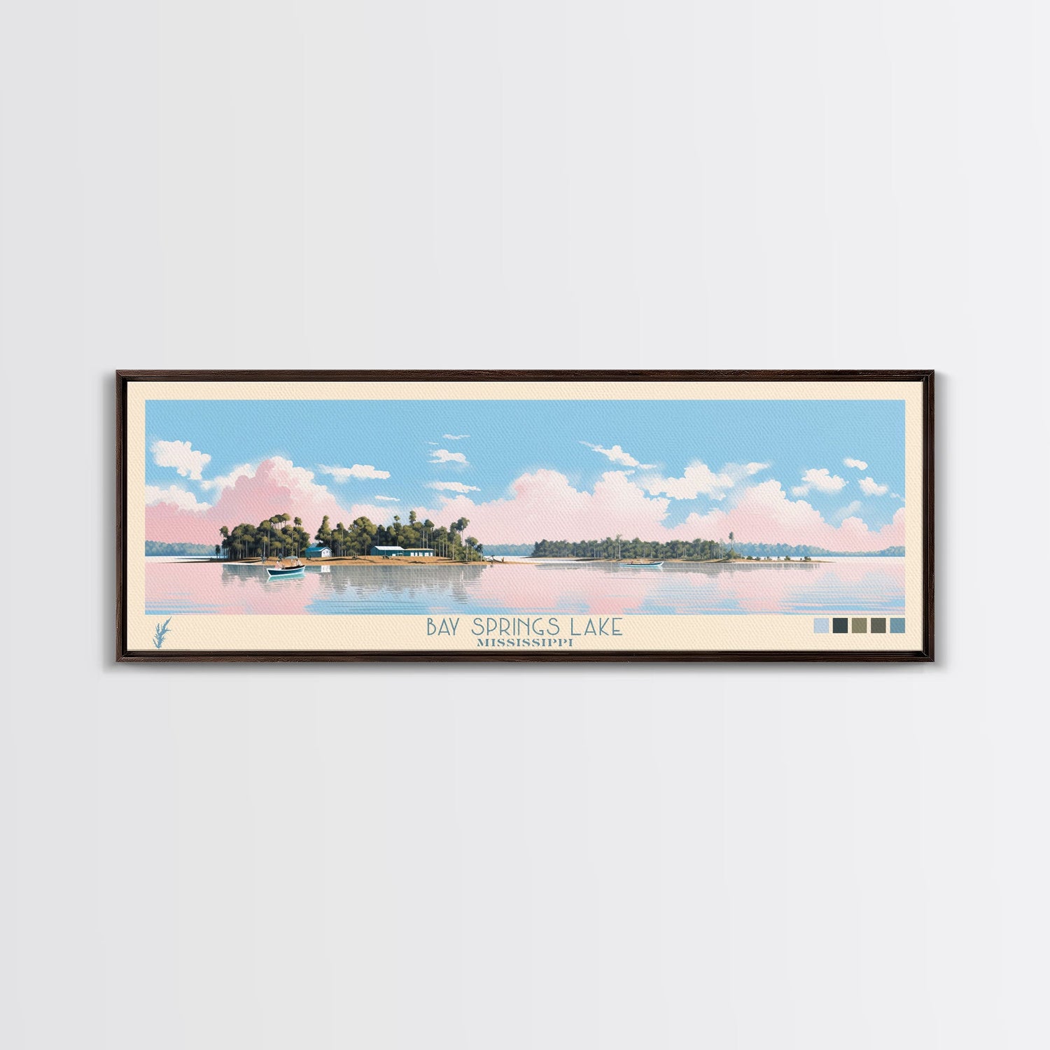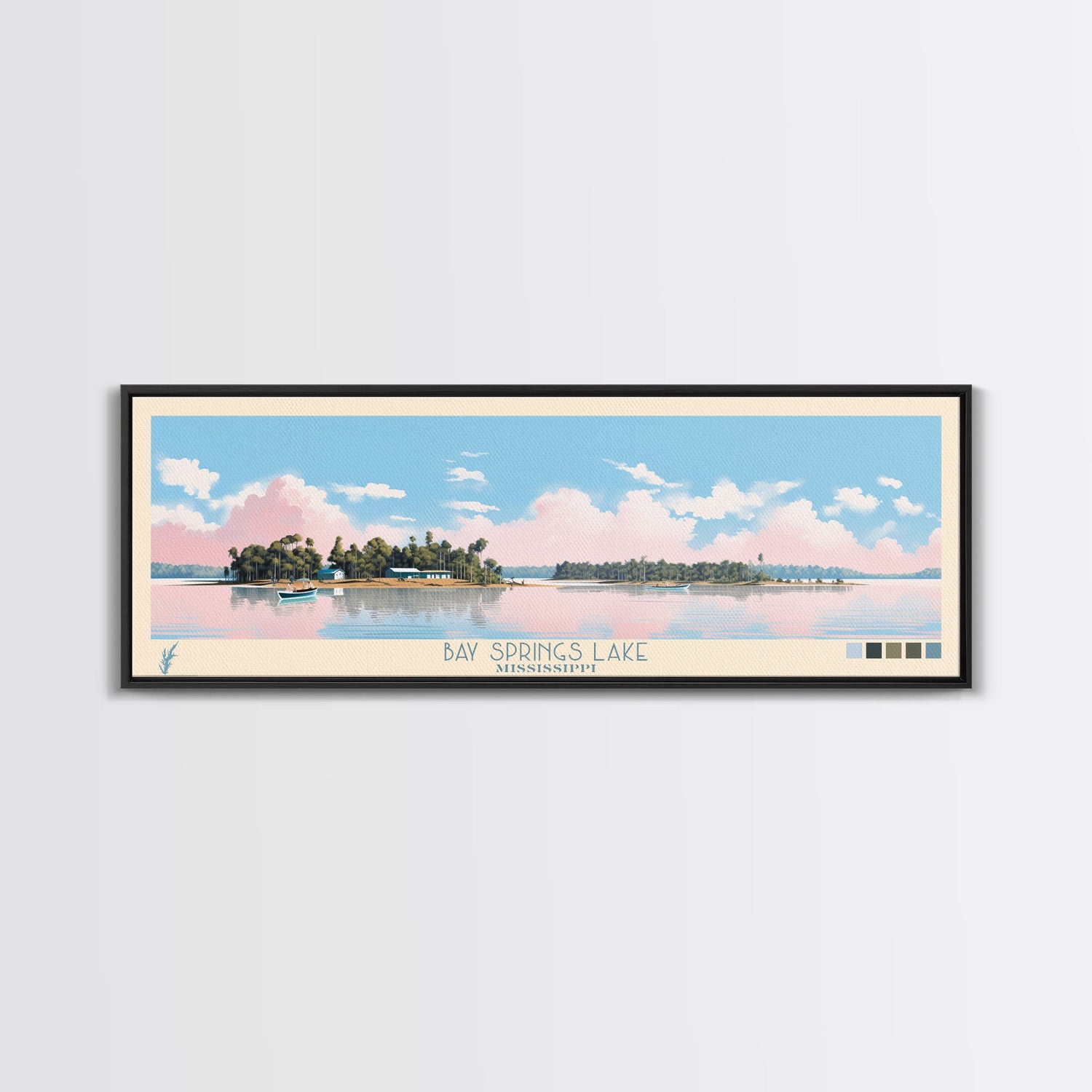 Bay Springs Lake Mississippi Framed Canvas Print, Panoramic Wall Art, Midcentury Modern, Pop Art, Travel Poster, Scenic Living Room Decor, Bedroom Art