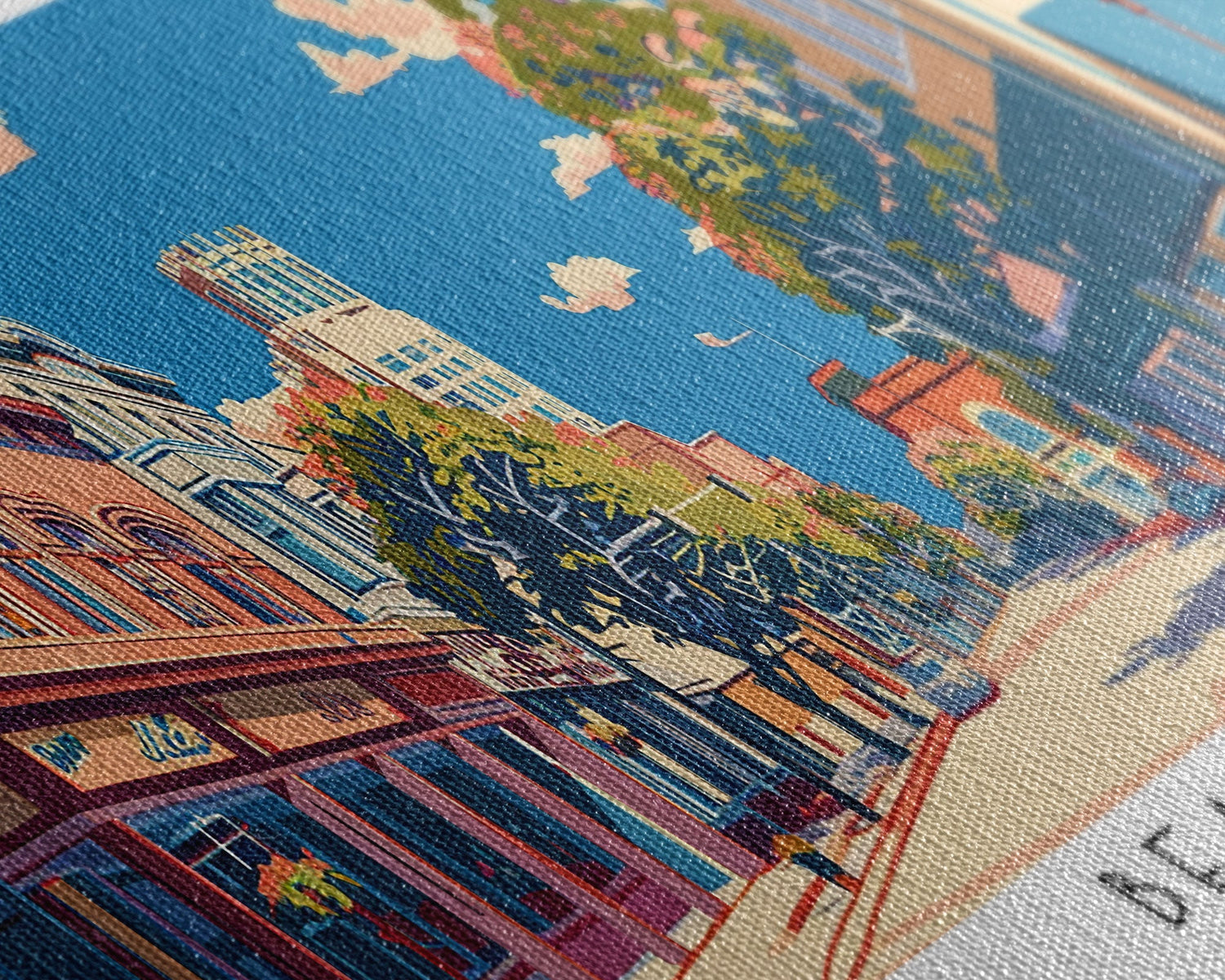 Beaumont Texas Panoramic Painting, Mid Century Modern Framed Canvas Print, Retro Pop Art Travel Poster, Living Room Wall Art, City Print
