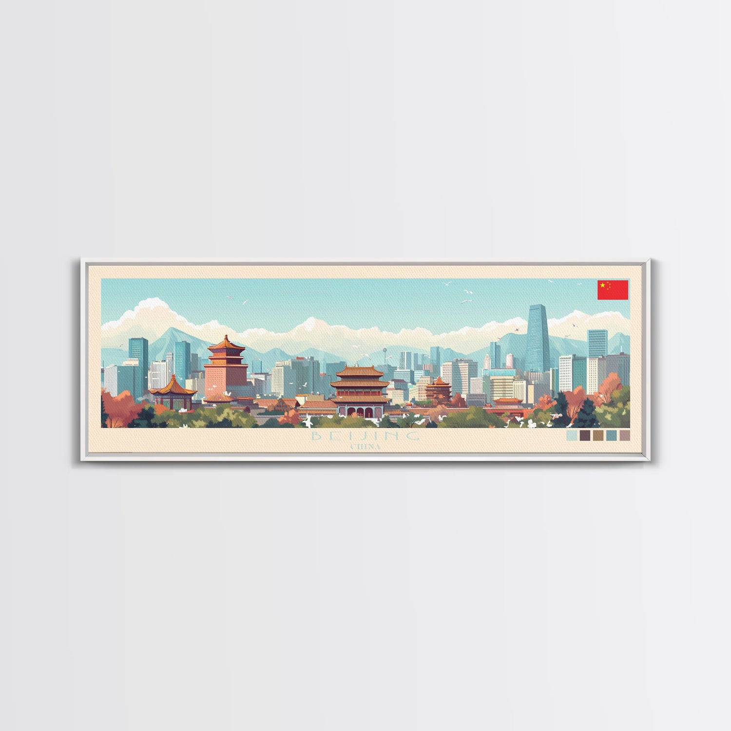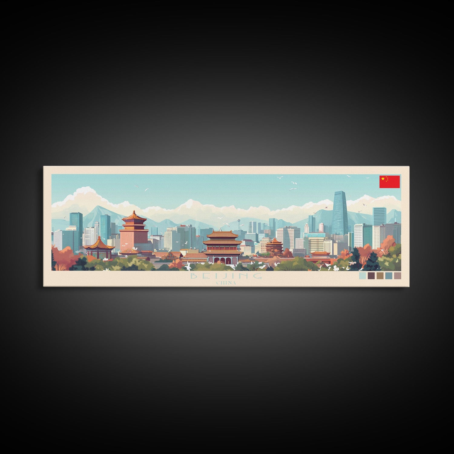 Beijing, China Panoramic Travel Poster Canvas Print, Beijing, China Painting, China Art, Beijing Travel Art, Guest Room Painting