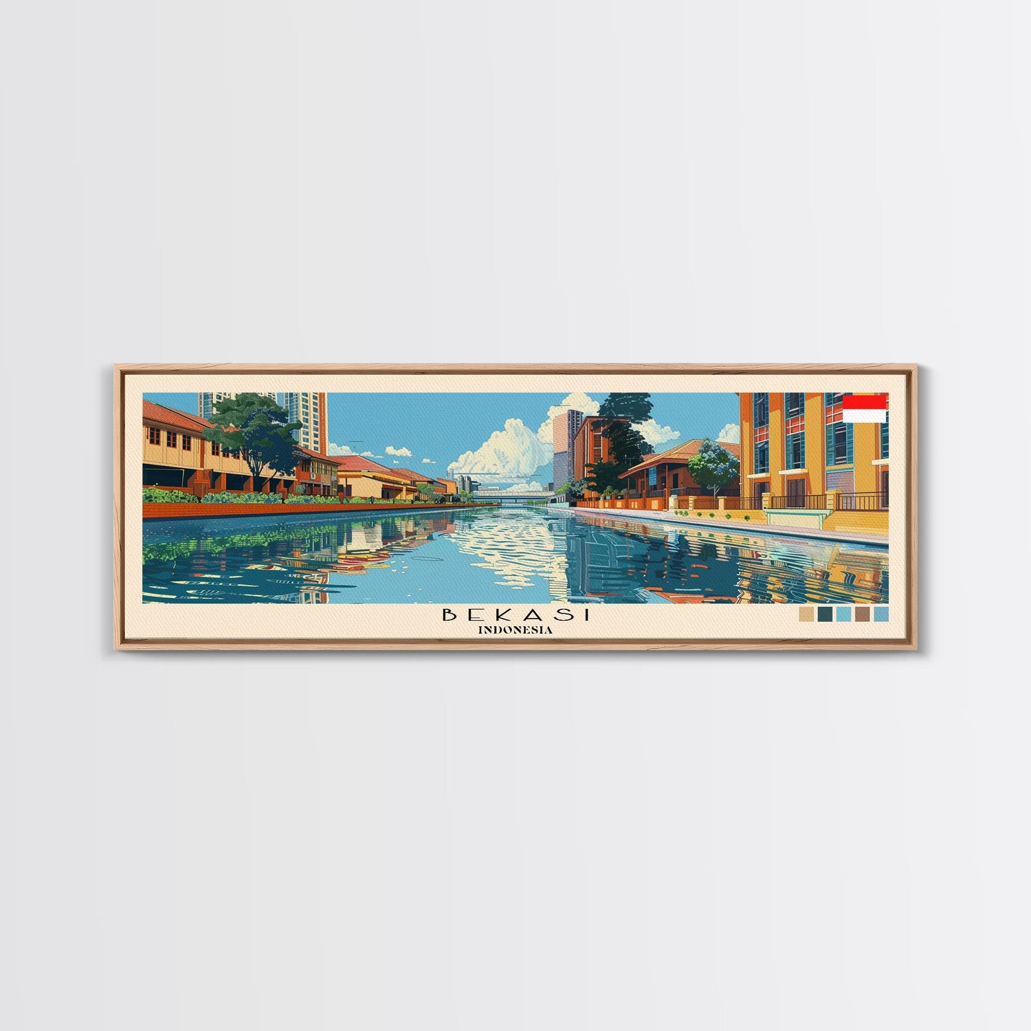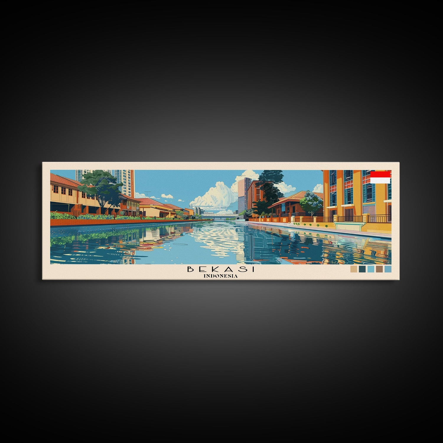 Bekasi, Indonesia Panoramic Canvas Print, Bekasi, Indonesia Painting, Indonesia Art, Bekasi Travel Poster, Travel Art, Guest Room Painting