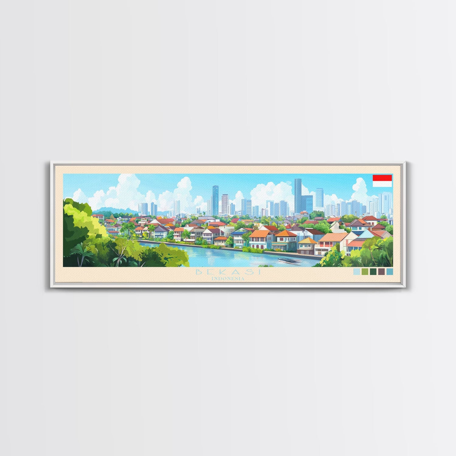 Bekasi, Indonesia Travel Poster Panoramic Canvas Print, Bekasi, Indonesia Painting, Indonesia Art, Bekasi Travel Art, Guest Room Painting